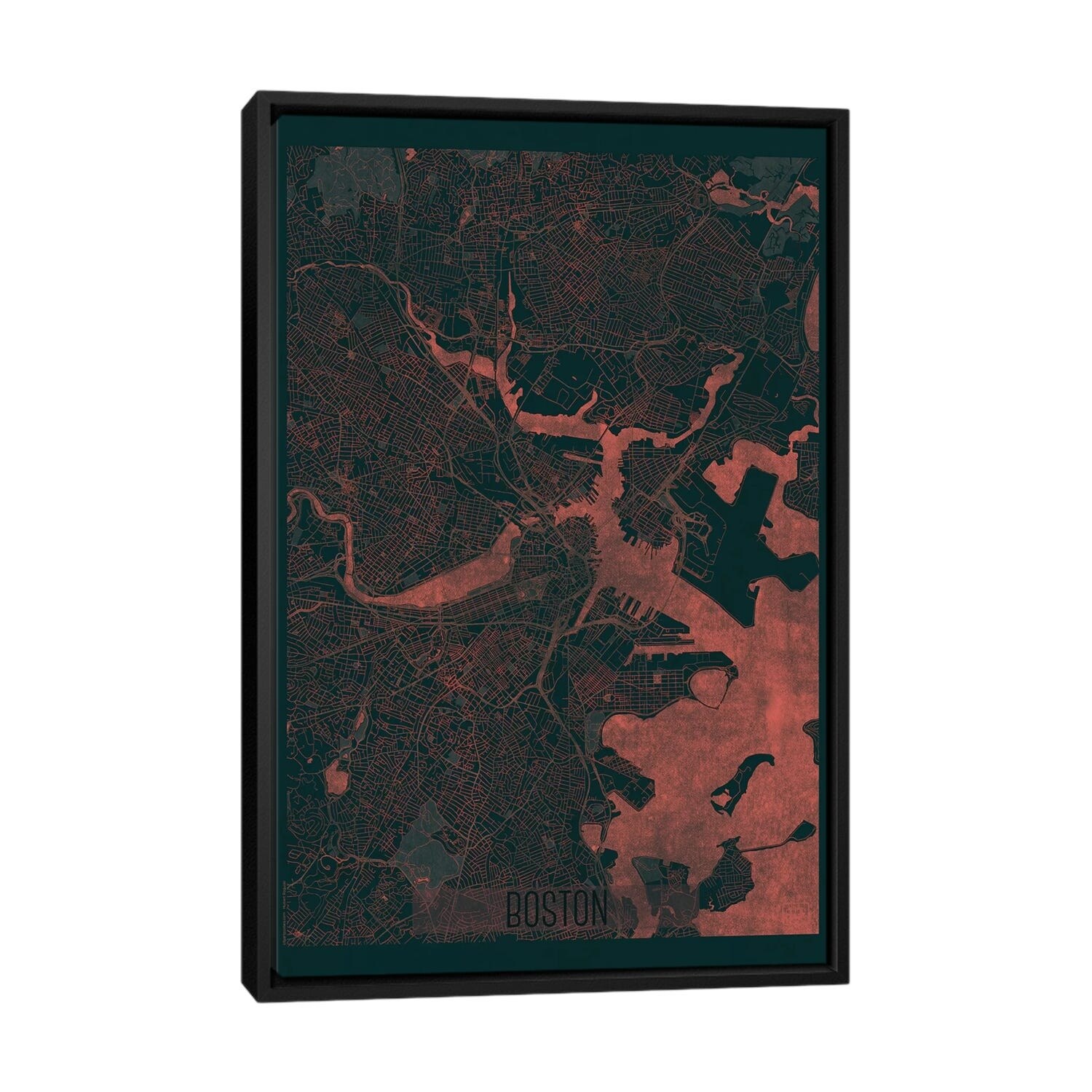iCanvas "Boston Infrared Urban Blueprint Map" by Hubert Roguski Framed Canvas Print