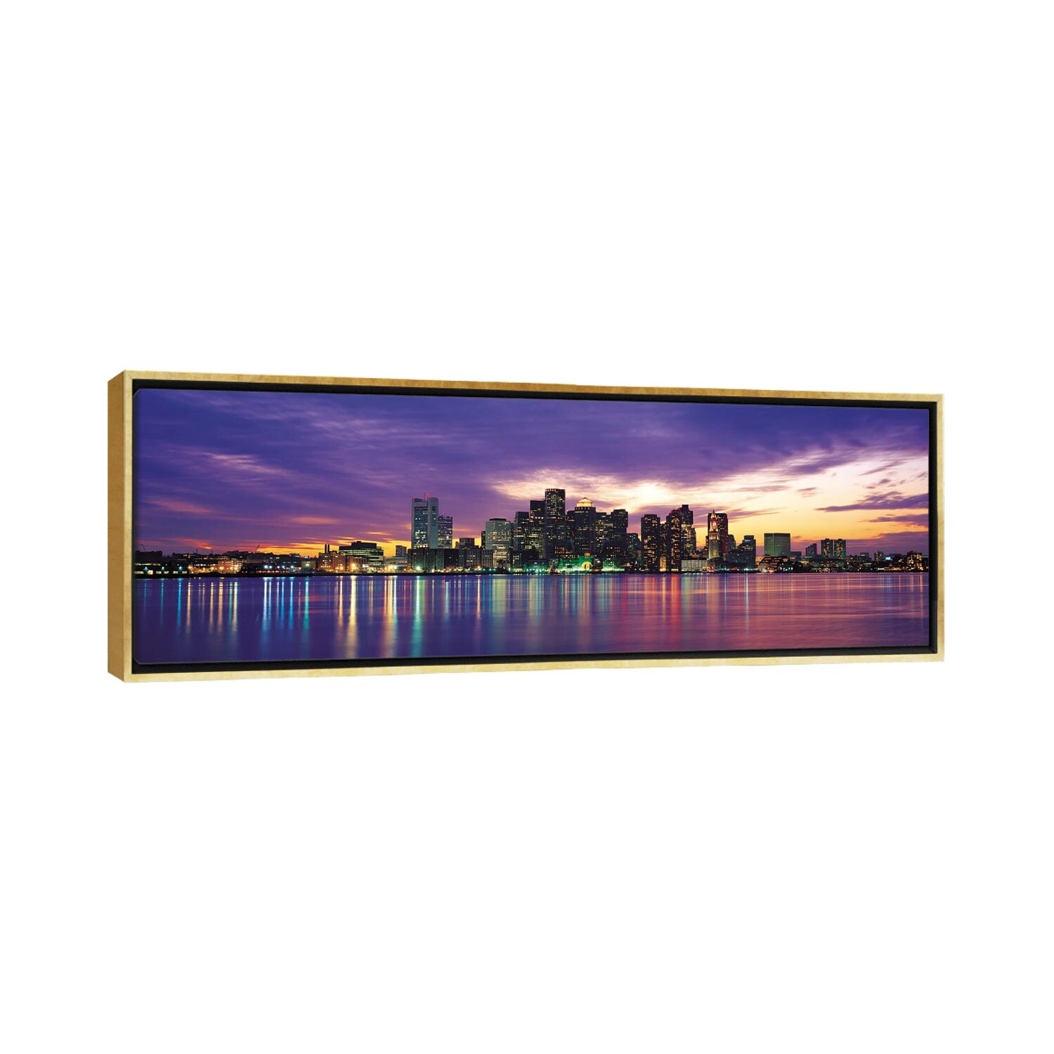 iCanvas "Boston Panoramic Skyline Cityscape (Sunset)" by Unknown Artist Framed Canvas Print