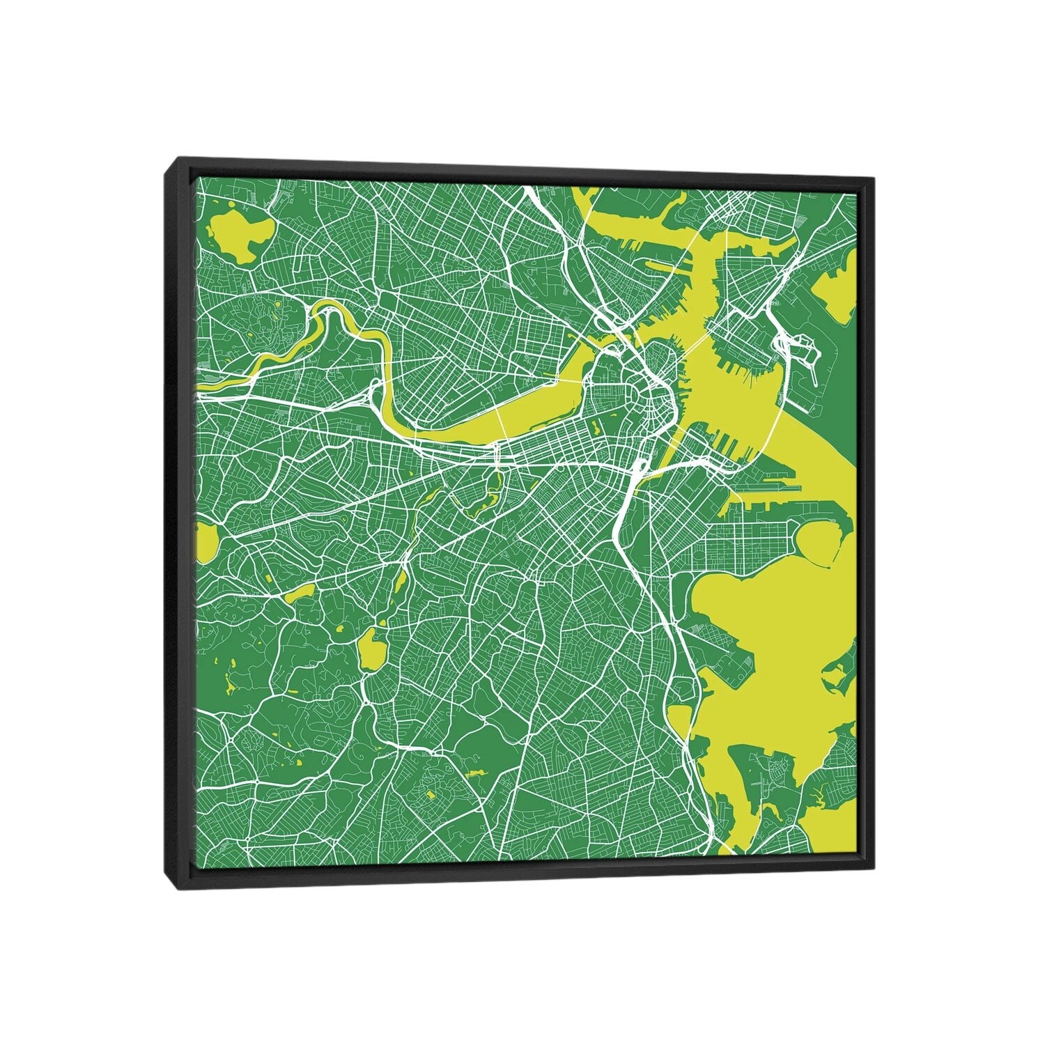 iCanvas "Boston Urban Roadway Map (Green)" by Urbanmap Framed Canvas Print