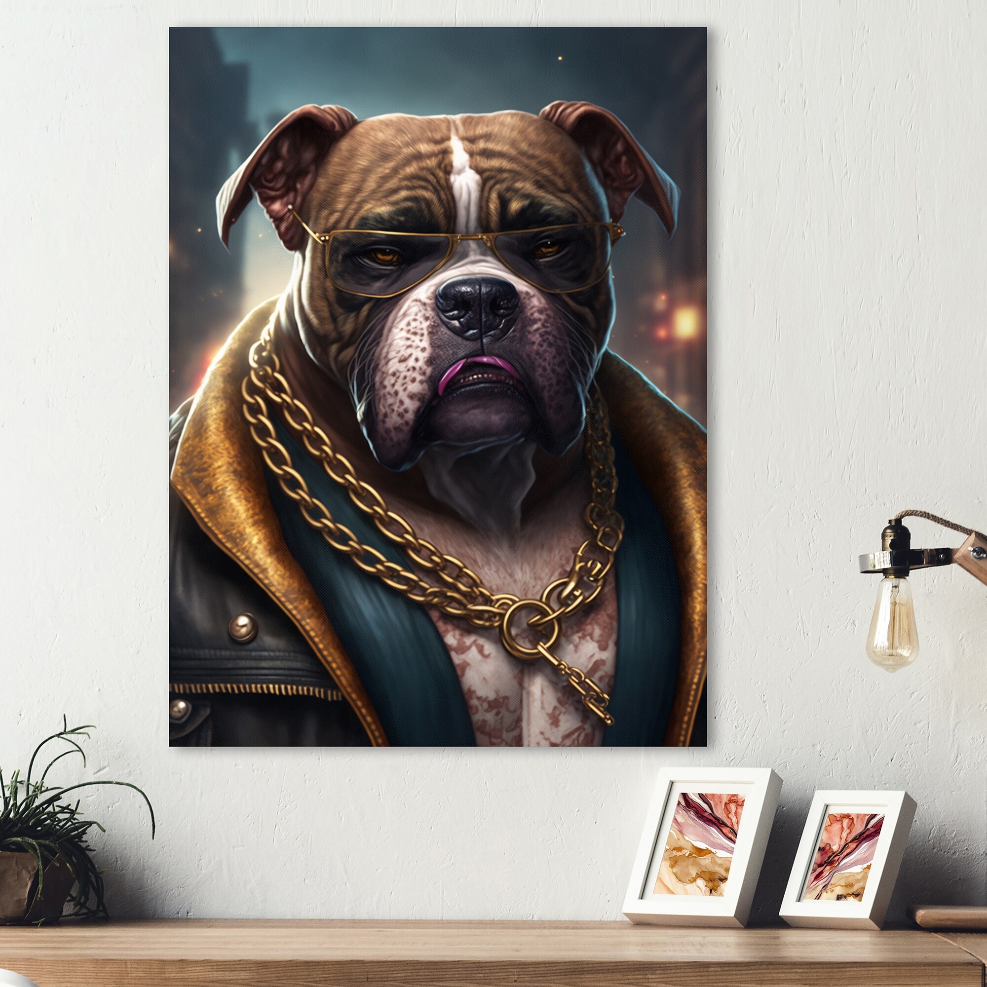 Designart "Boxer Gangster in NYC II" Animals Framed Canvas Art Print