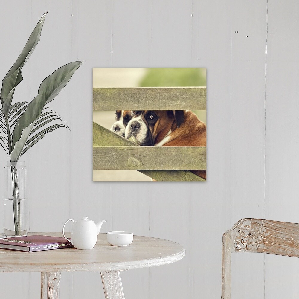"Boxer dog at gate with ball in its mouth" Canvas Wall Art