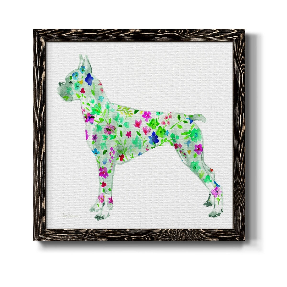 Designart "Cute Boxers Floral Art" Animals Framed Art Print