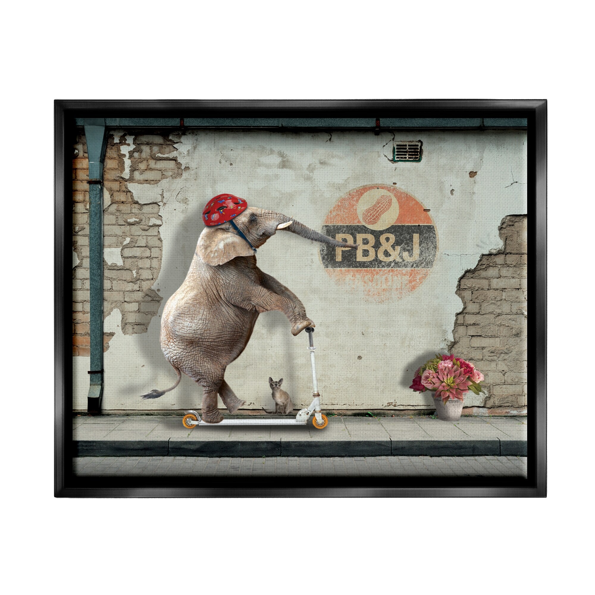 Stupell Elephant Riding Scooter Old Brick City Streets Floater Frame, Design by Nobleworks