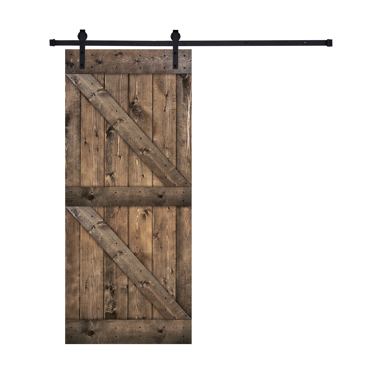 CALHOME X Series Stained Wooden Sliding Barn Door w/ Hardware Kit