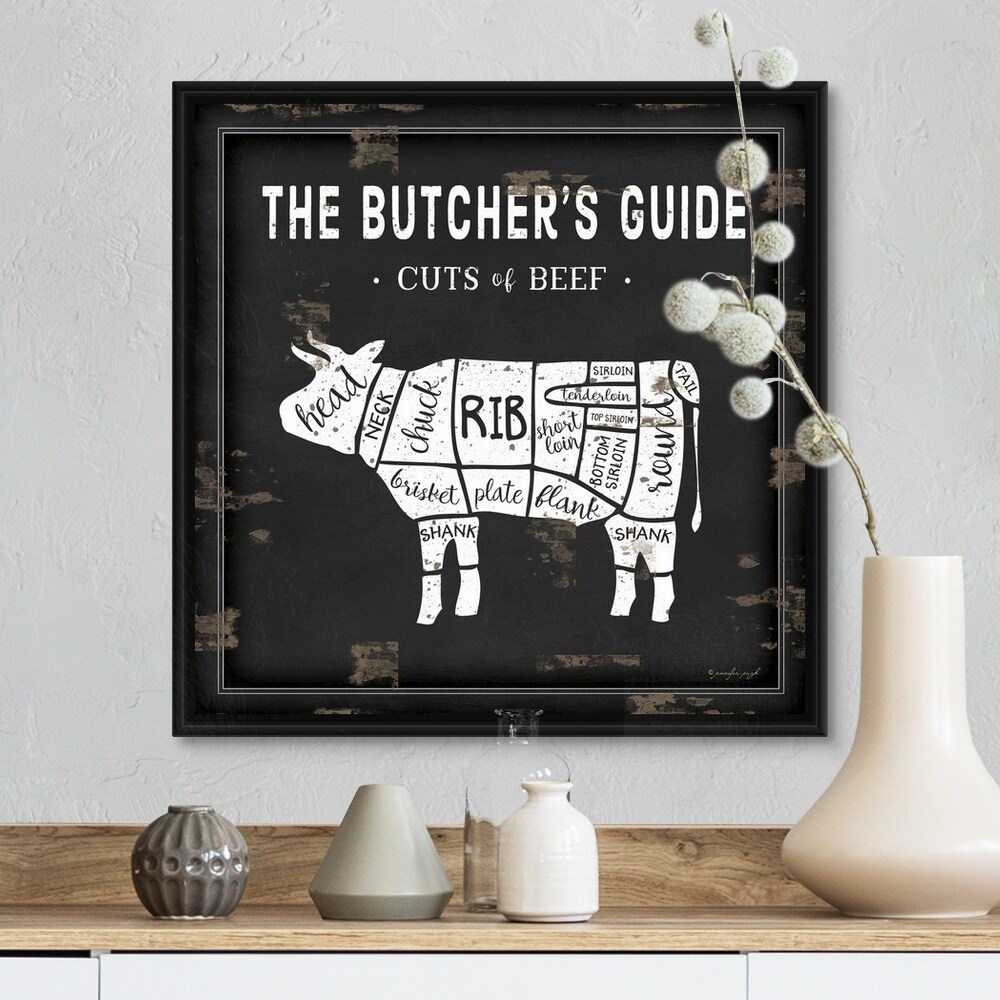 "Butcher's Guide Cow" Black Float Frame Canvas Art