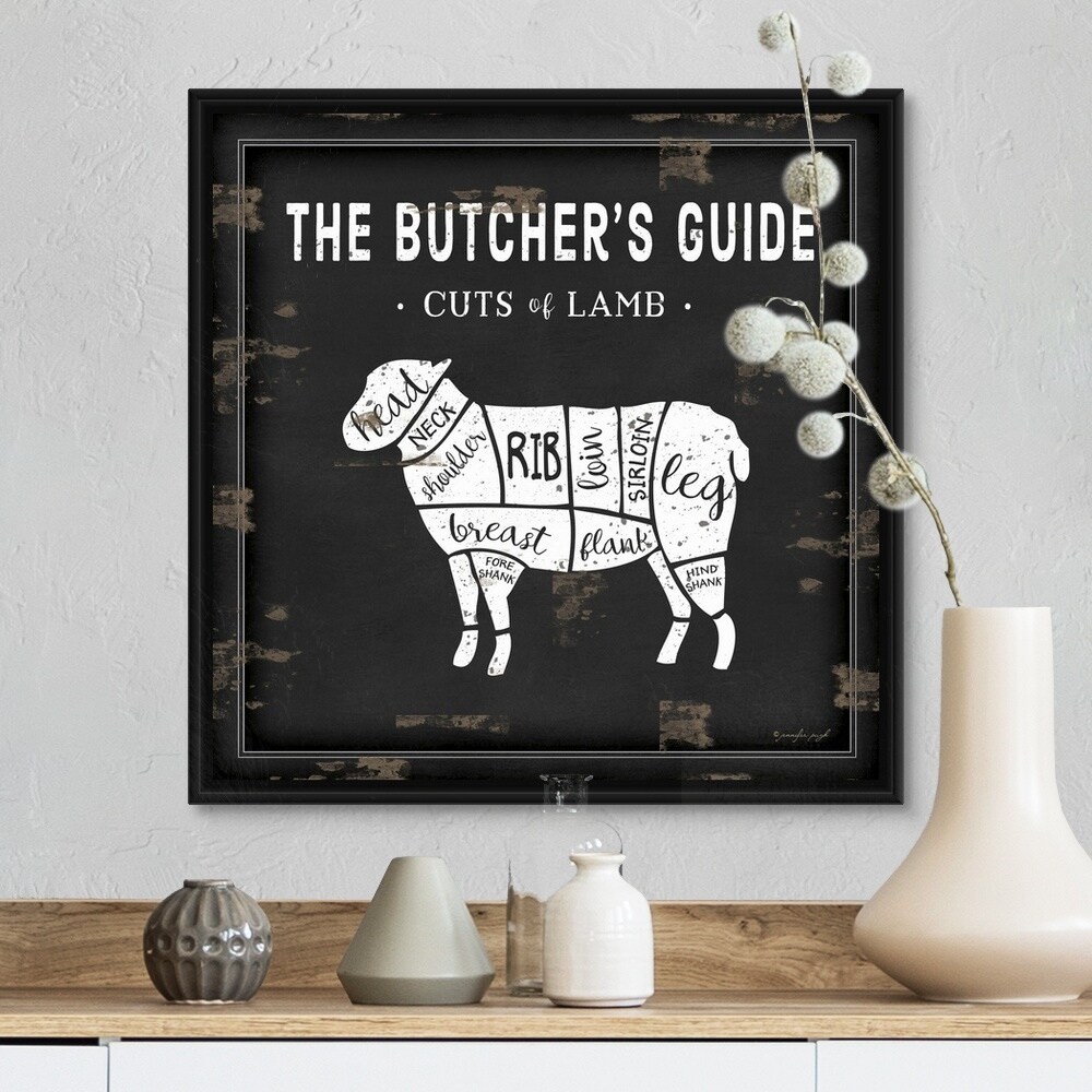 "Butcher's Guide Lamb" Black Float Frame Canvas Art