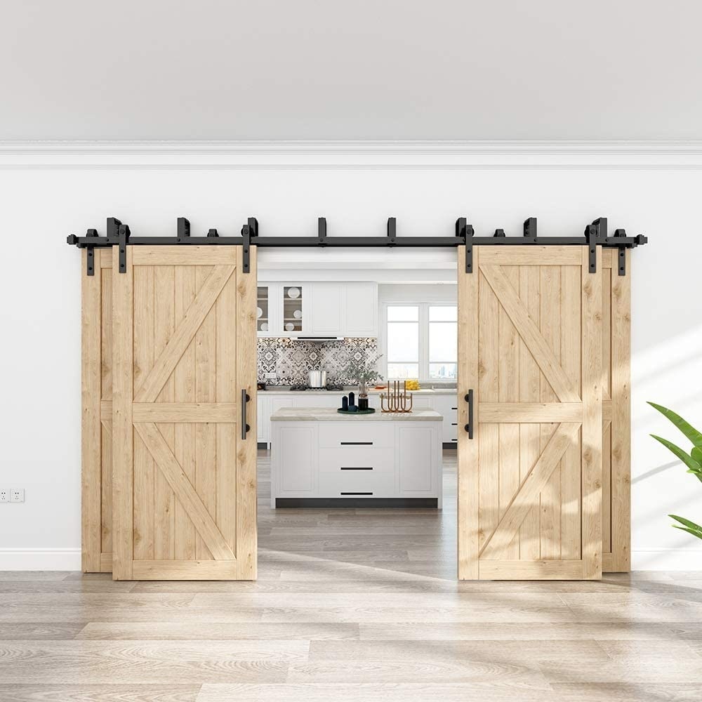 WINSOON 4-18FT Bypass Sliding Barn Door Hardware Kit for Four Doors J Roller