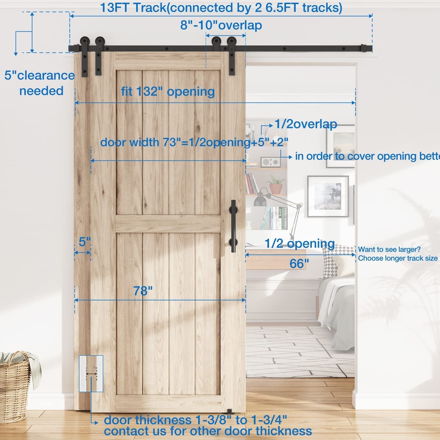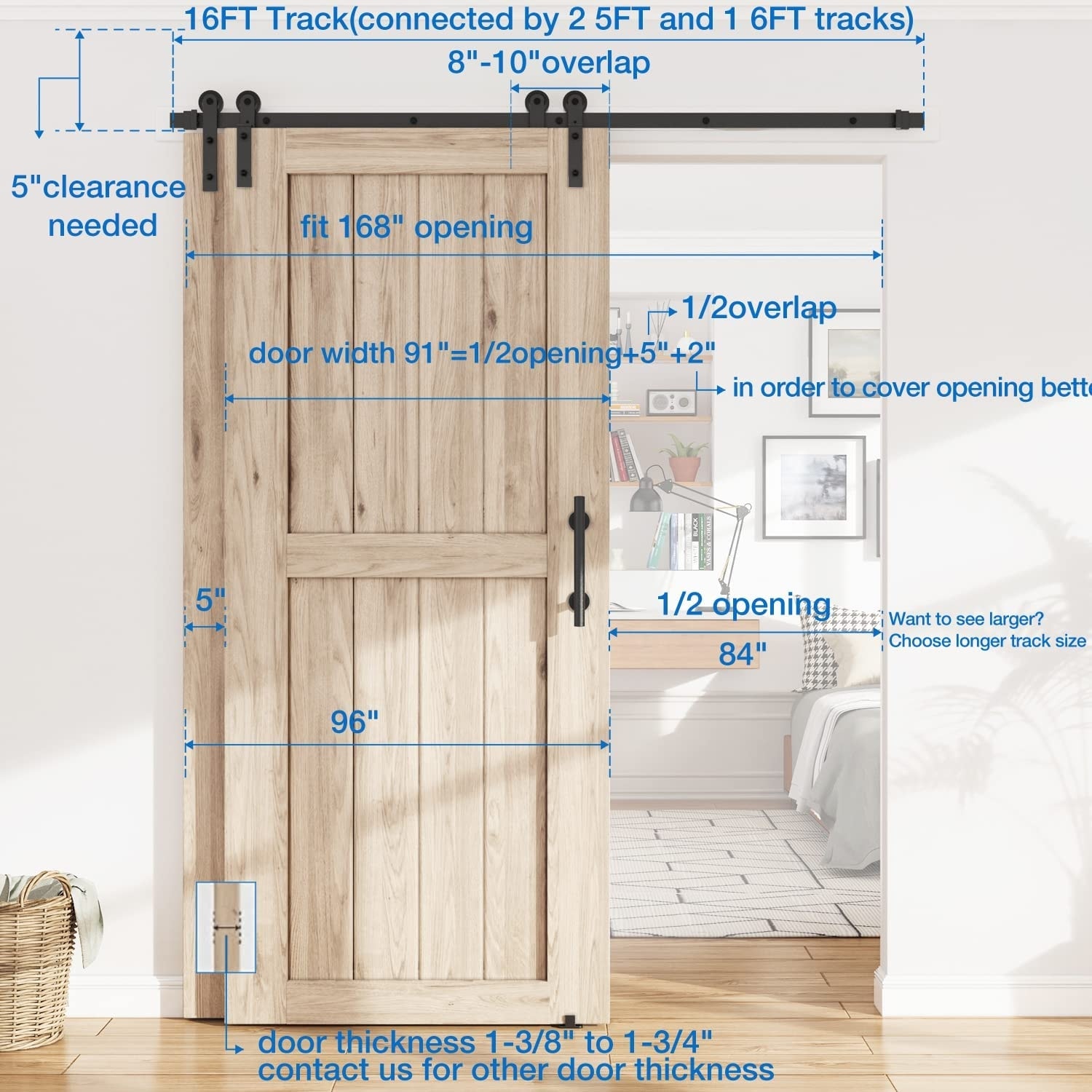 WINSOON 5-16FT Bypass Sliding Barn Door Hardware Kit fit for Double Doors I Shape Hangers