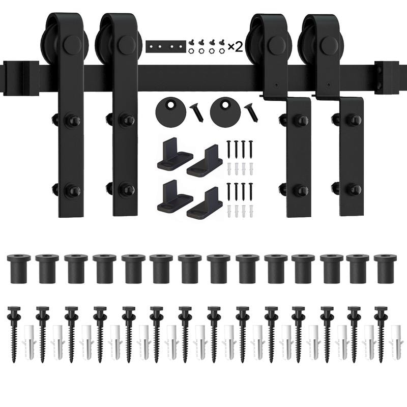 WINSOON 5-16FT Top Mount Bypass Sliding Barn Door Hardware Kit for Low Ceiling fit Double Doors