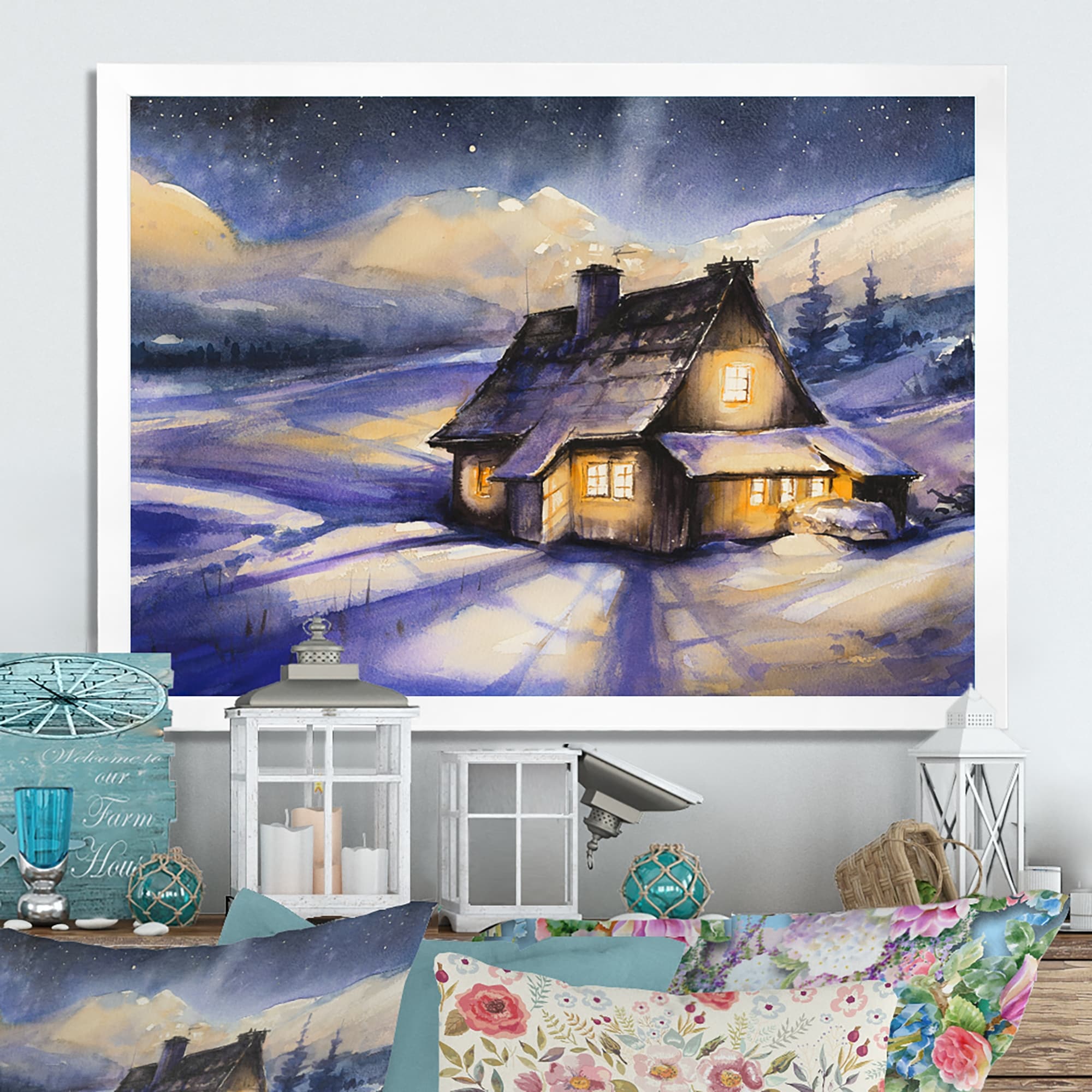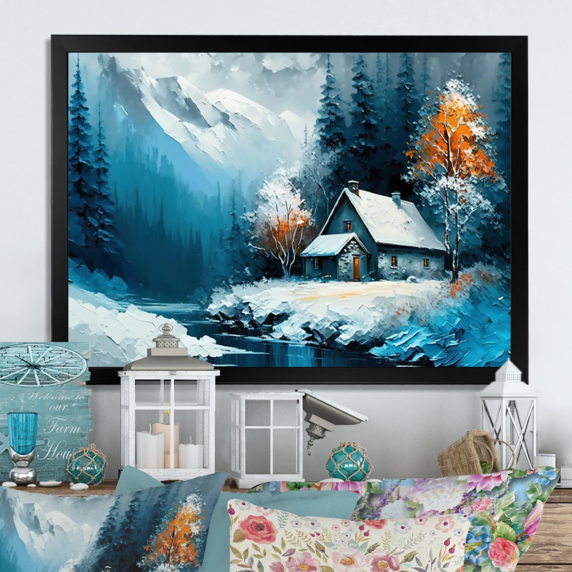 Designart "Cottage In Winter Mountains" Cabin & Lodge Framed Wall Art