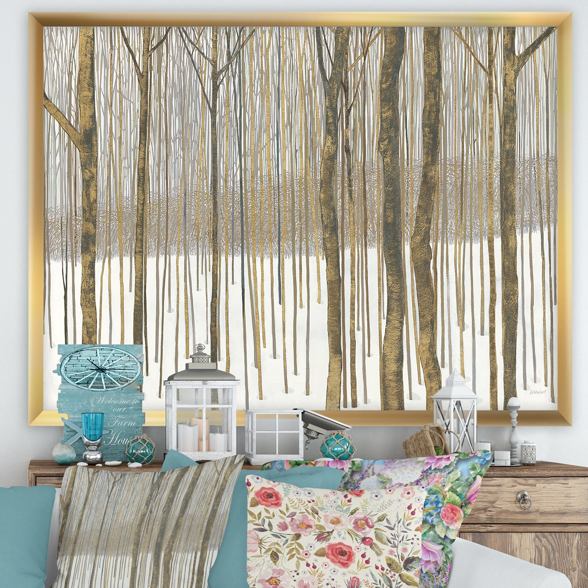 Designart "Forest in Winter Gold" Cabin & Lodge Framed Art Print