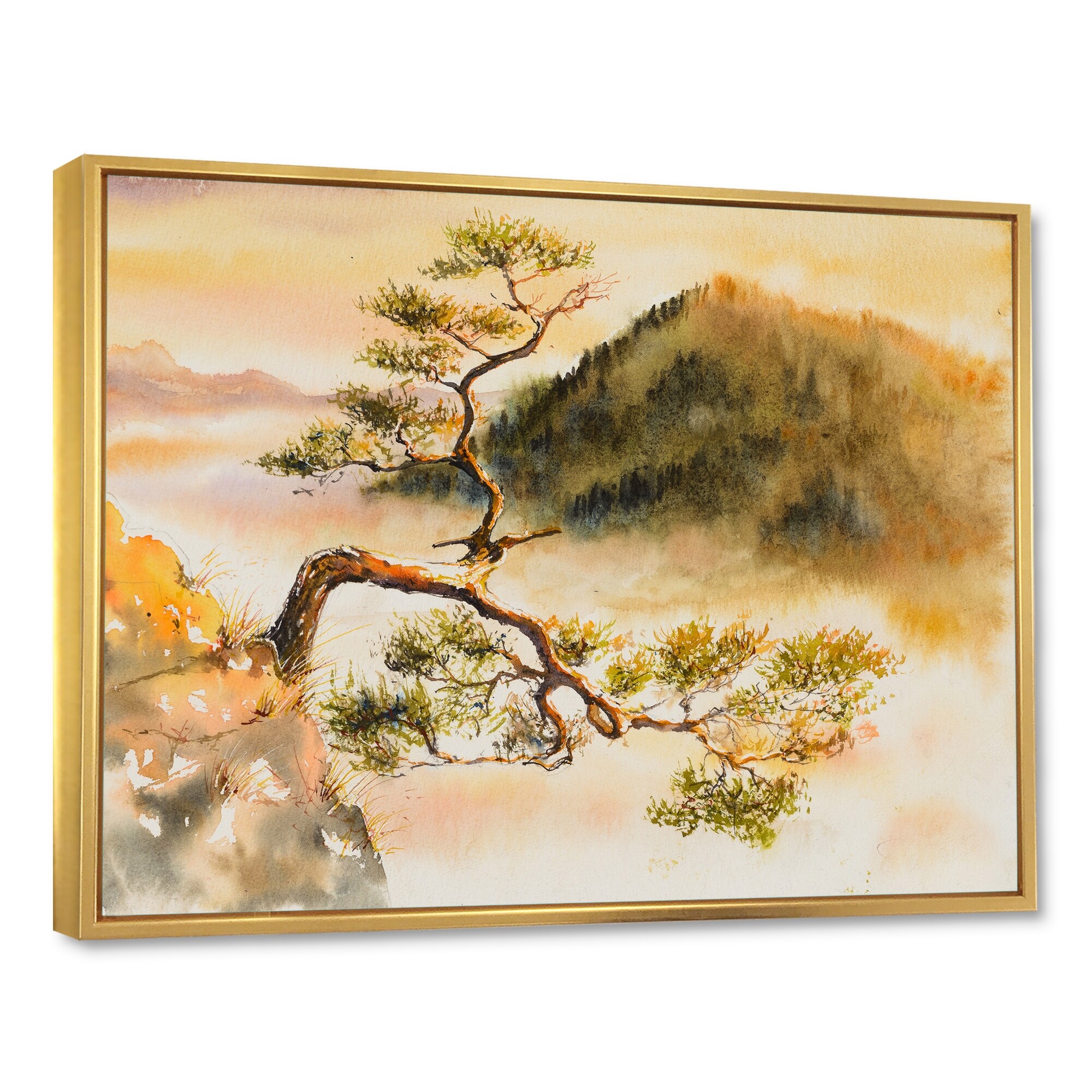Designart "Pine Tree on Mountain Top" Cabin & Lodge Framed Canvas Wall Art Print