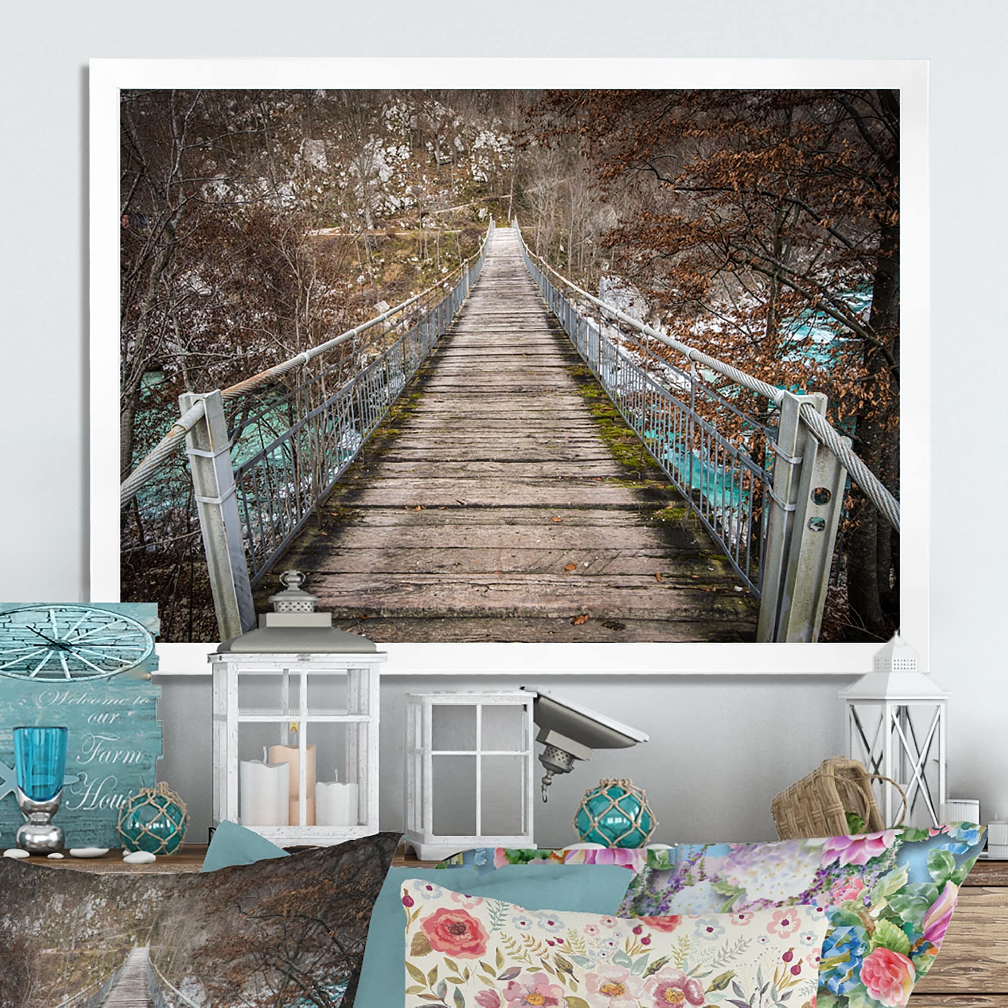 Designart "Mystic Bridge in Turquoise River" Cabin & Lodge Framed Art Print