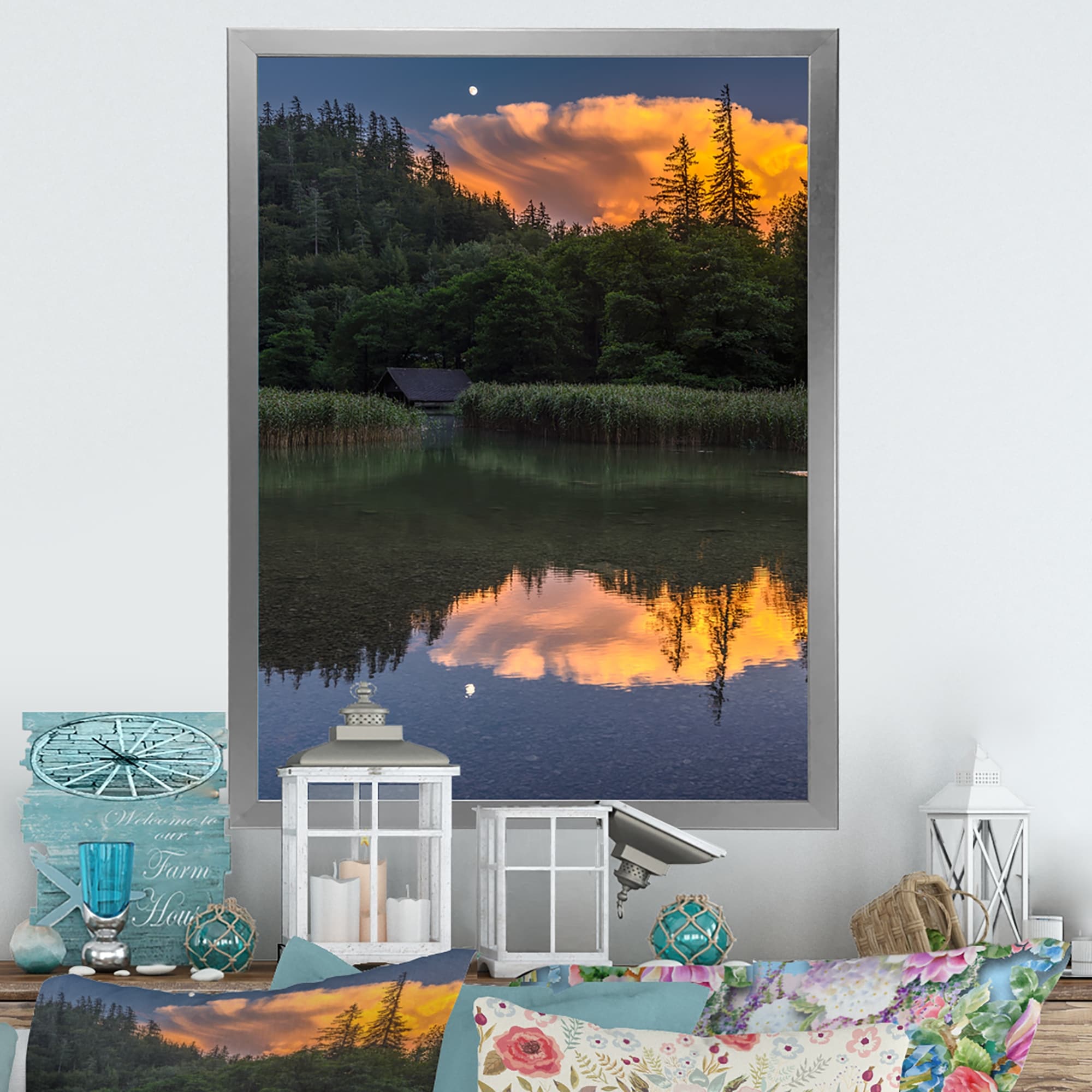 Designart "Cloud Reflecting on Lake Water" Cabin & Lodge Framed Wall Art