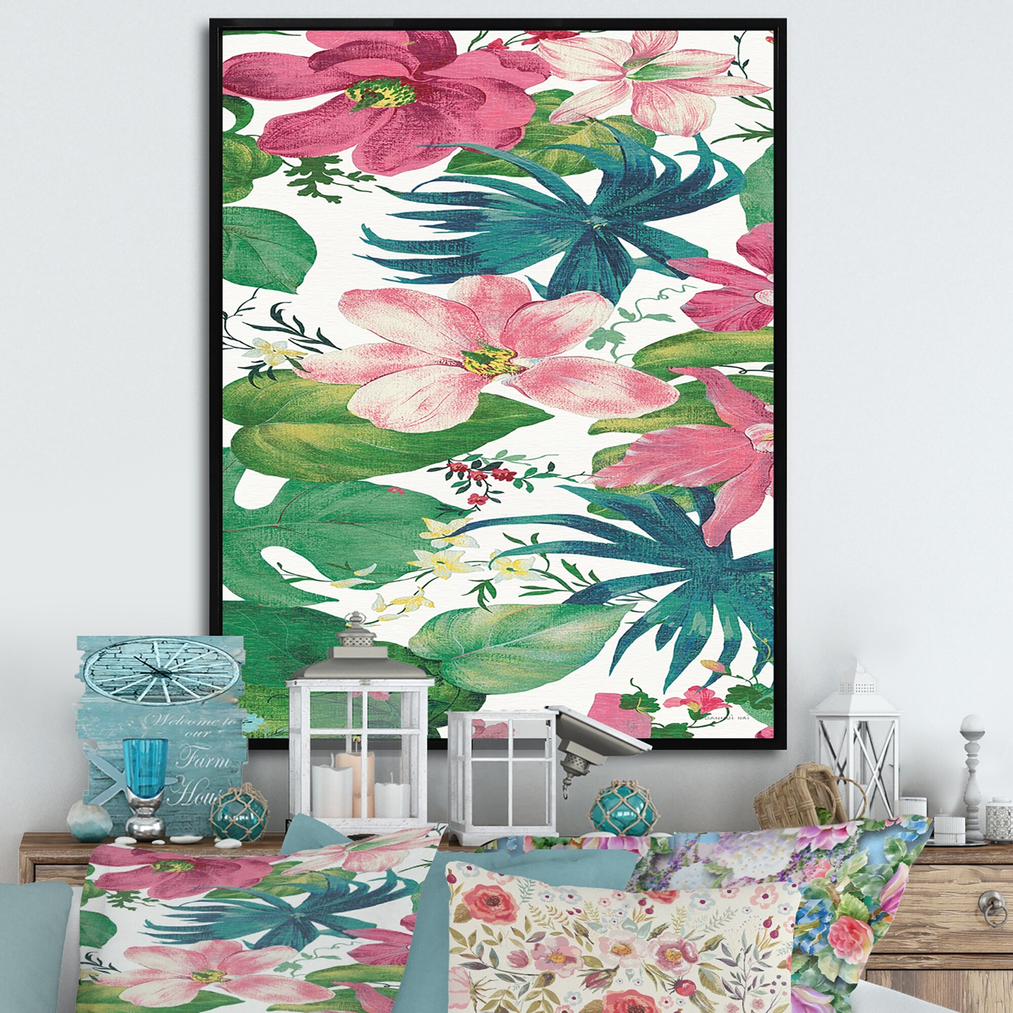 Designart "Pink Tropical Flowers" Cabin & Lodge Framed Canvas - Multi-color