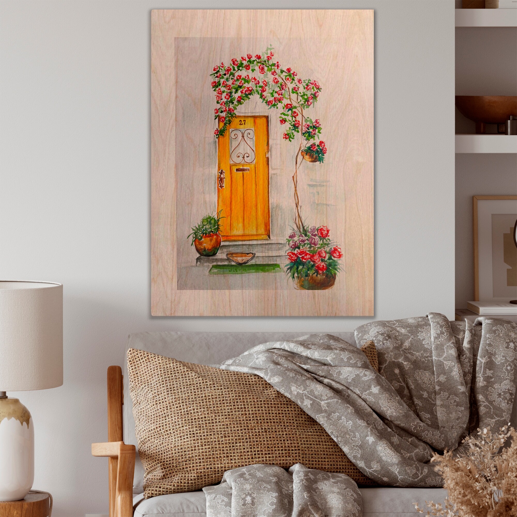 Designart 'Painting Vintage Floral Old Door' Cabin & Lodge Wood Wall Art Décor - Natural Pine Wood