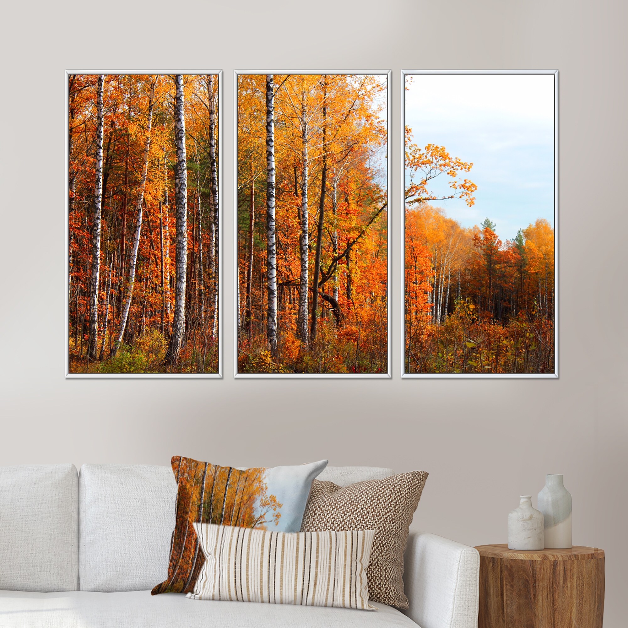 Designart "Oange Trees in Fall" Cabin & Lodge Framed Art Prints Set of 3 - 4 Colors of Frames