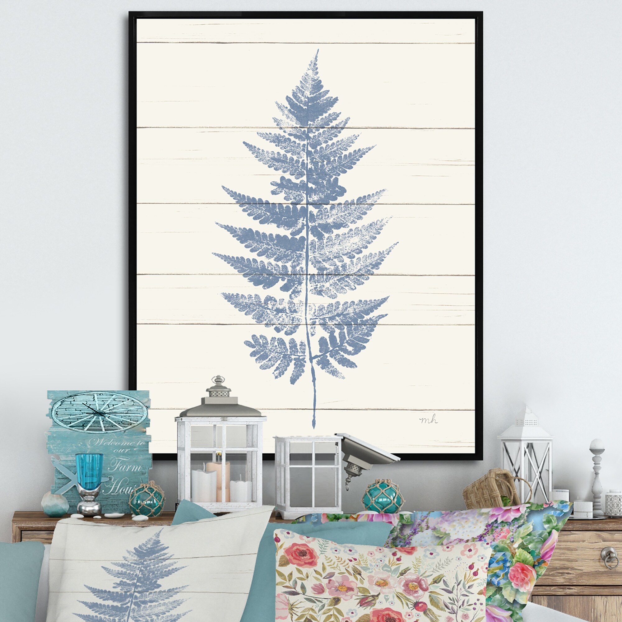 Designart "Blue Fern Print on wood I" cabin & Lodge Framed Canvas - Blue