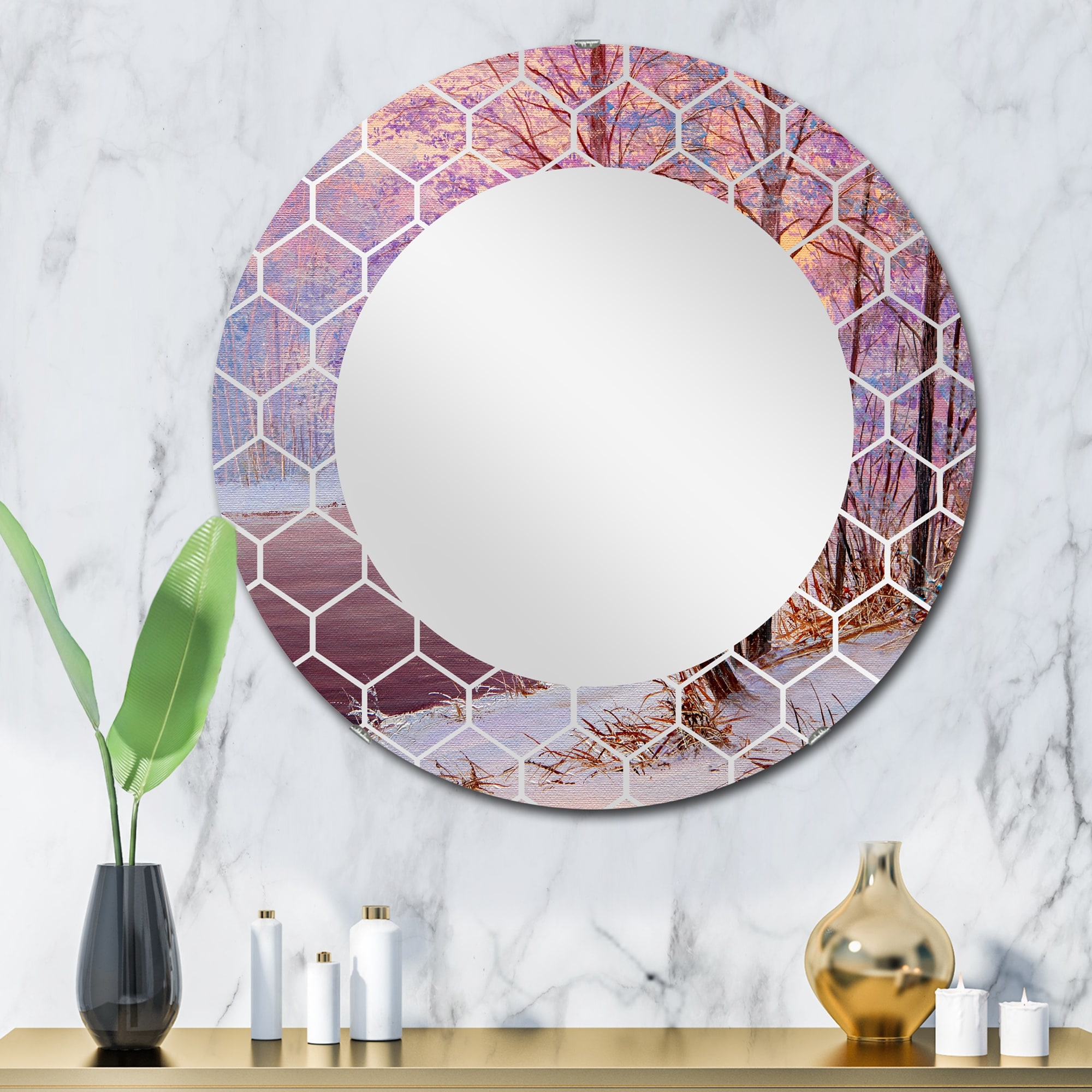 Designart 'Sunshine Through Snowy Winterlandscape III' Printed Cabin & Lodge Wall Mirror