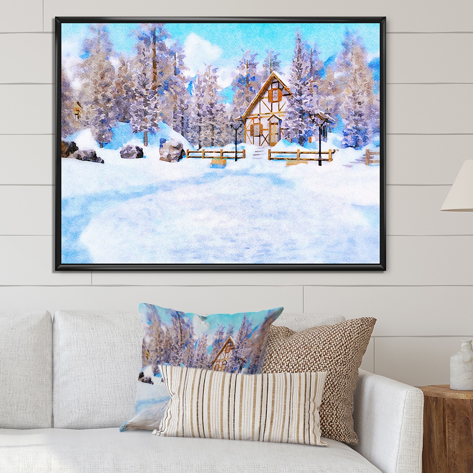 Designart "Cottage In Winter Countryside" Cabin & Lodge Framed Canvas Art Print