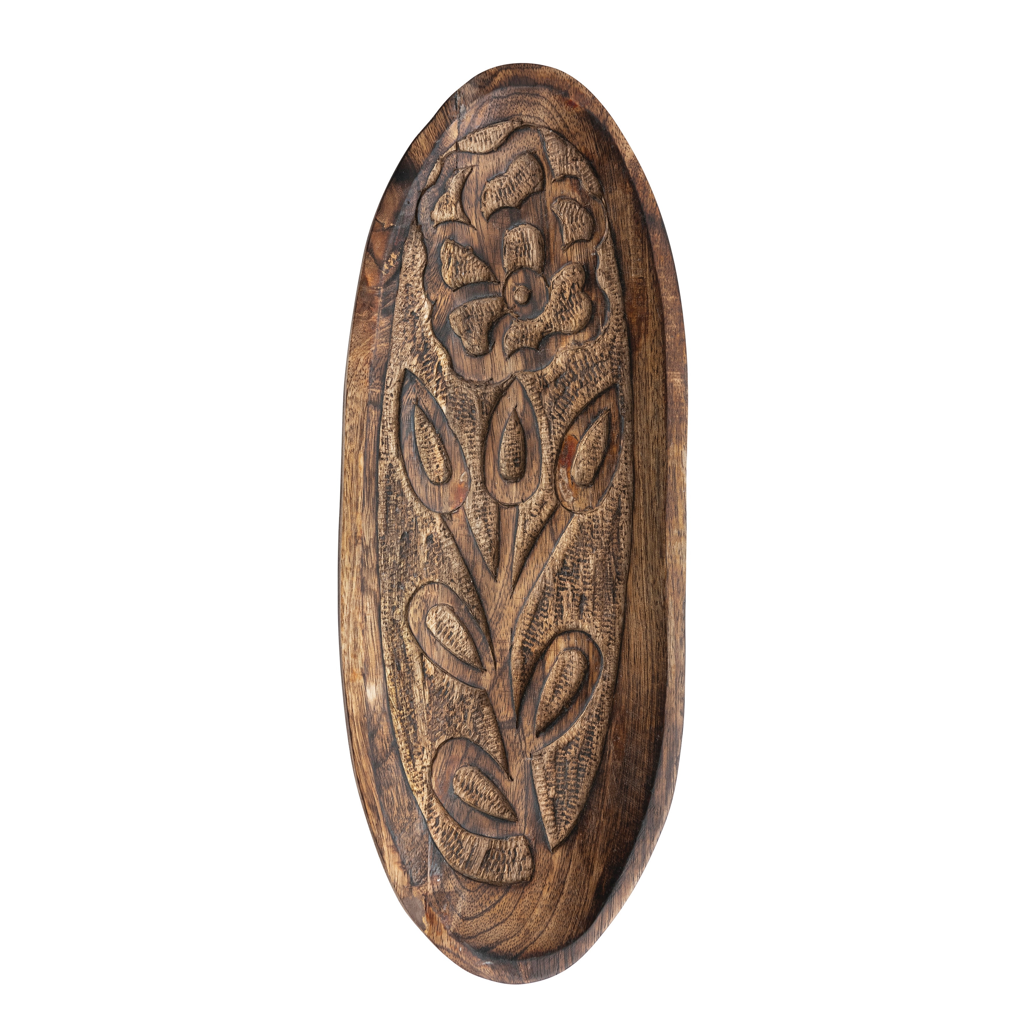 Decorative Wood Tray with Carved Design - 15.0"L x 5.8"W x 1.0"H