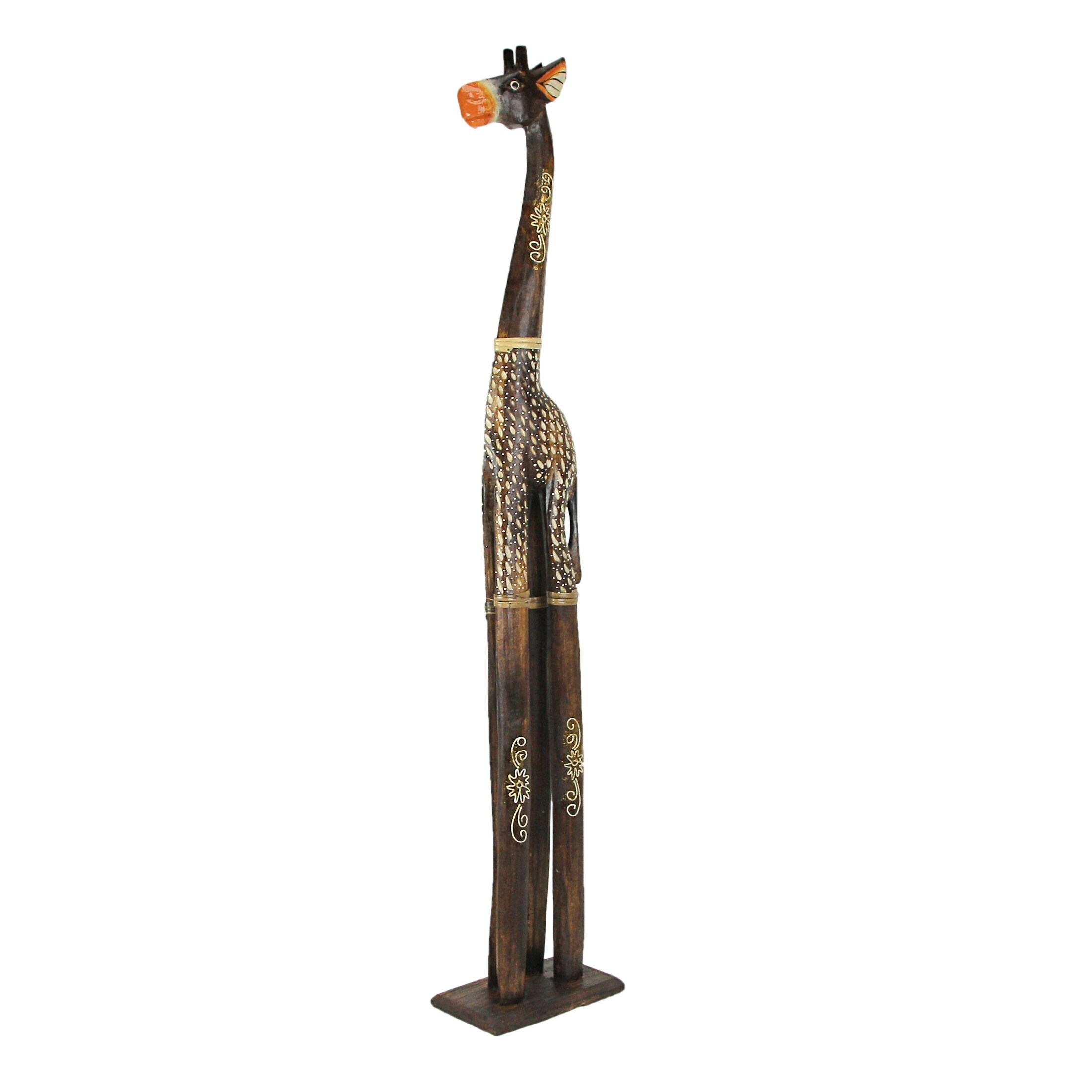 40 Inch Tall Hand Carved Standing Wooden Giraffe Statue - 39.5 X 7.5 X 4.5 inches