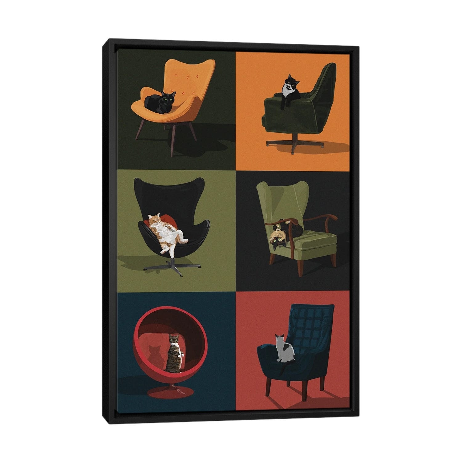 iCanvas "Cats In Chairs" by Artcatillustrated Framed Canvas Print