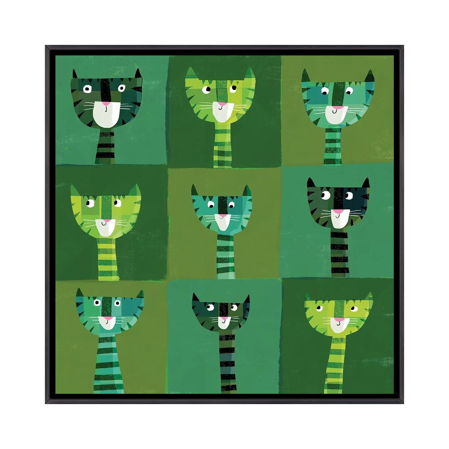 iCanvas "Green Cats" by Gareth Lucas Framed