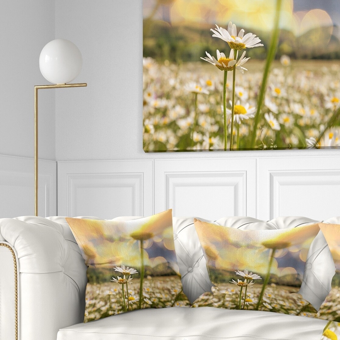 Designart 'Blooming Chamomiles Flowers' Landscape Printed Throw Pillow