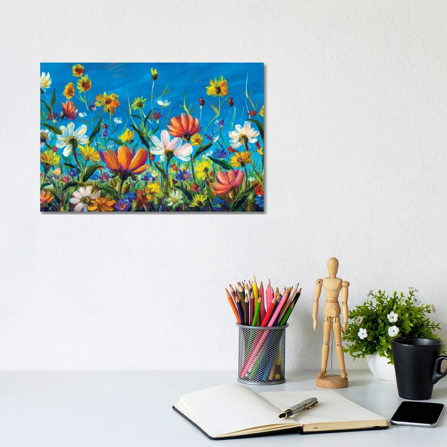 iCanvas "Extra Wide Flower Panorama of Beautiful Spring Wildflowers Chamomile Painting" by Valery Rybakow Canvas Print