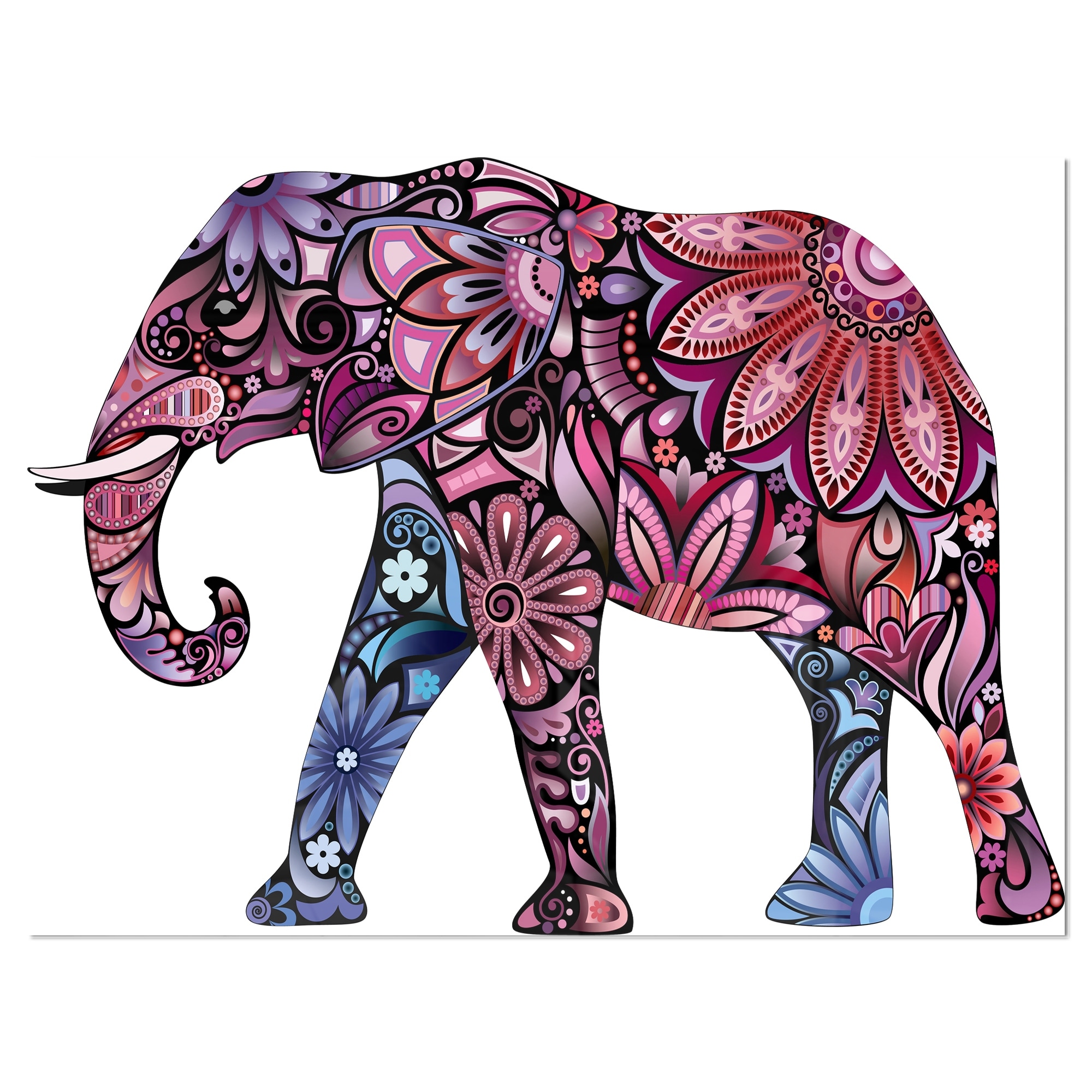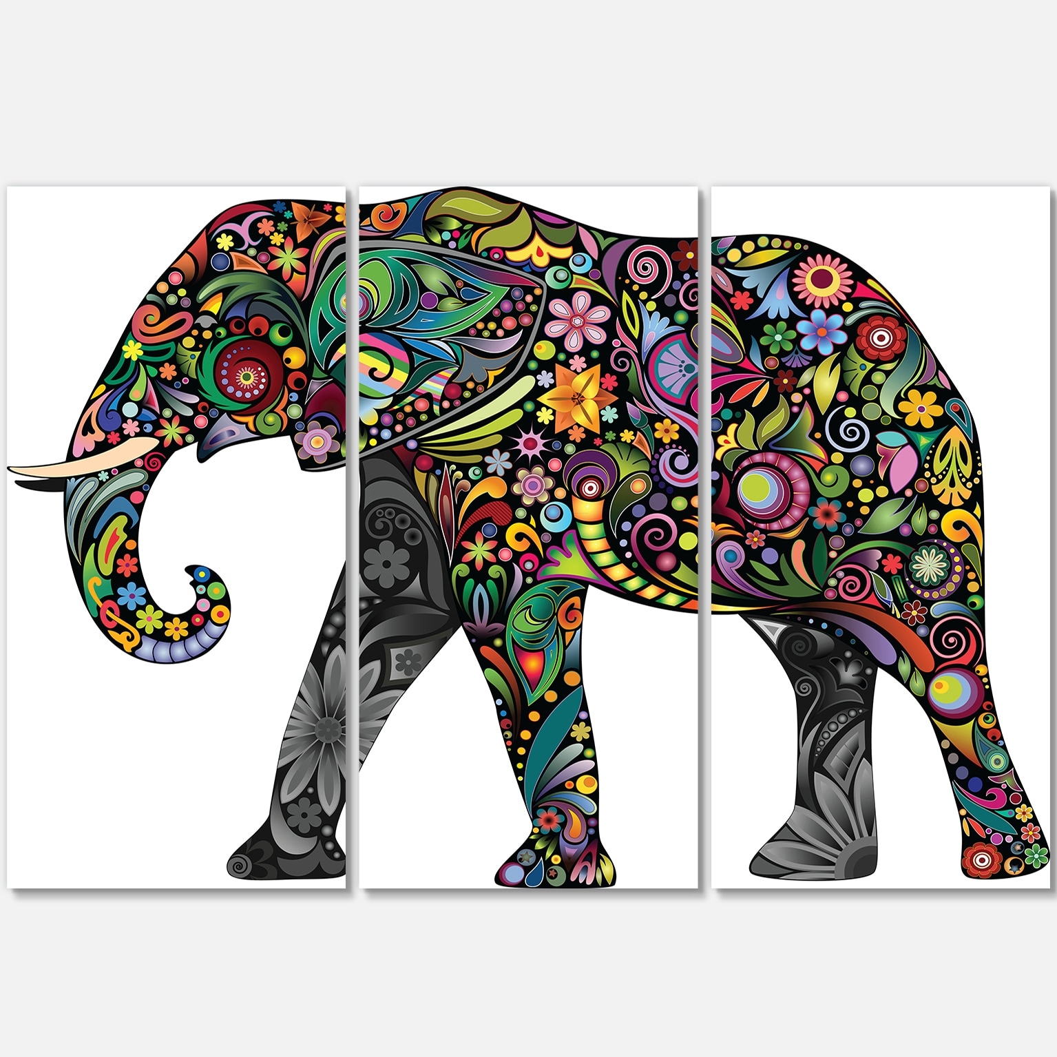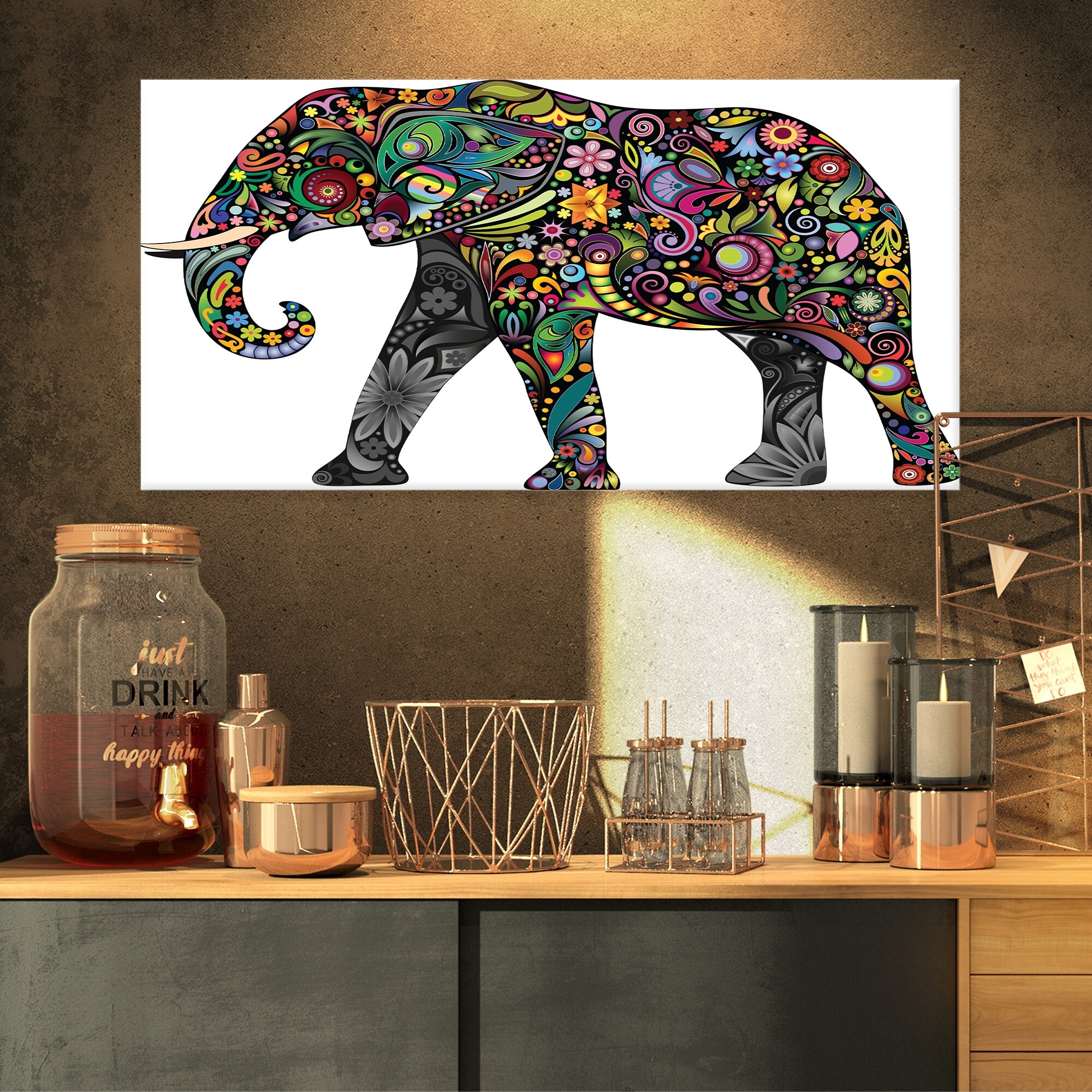 Designart "Floral Cheerful Elephant" Animal Digital Art Canvas Print