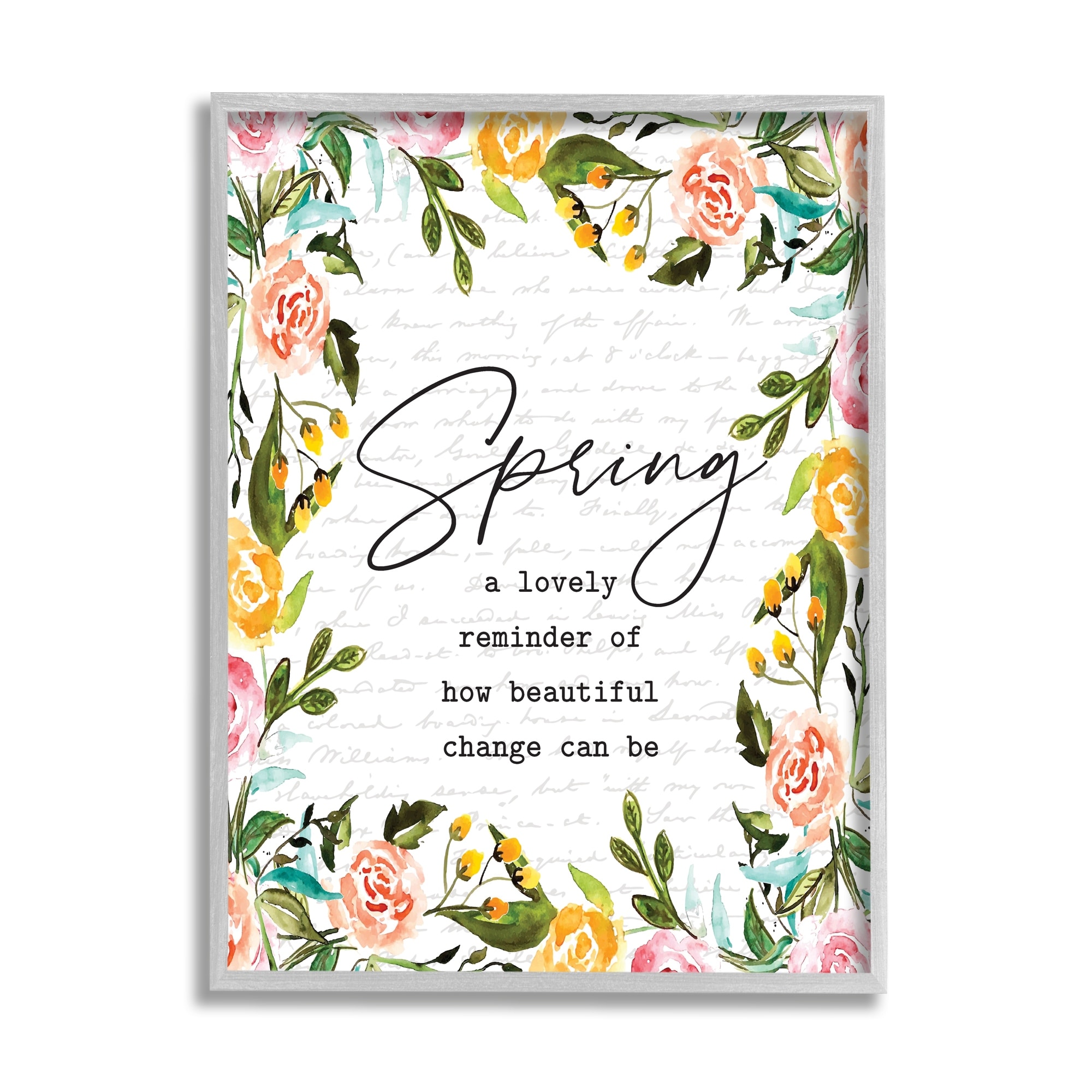 Stupell Cheerful Spring Typography Quote Floral Blossom Border Framed Wall Art - Multi-Color