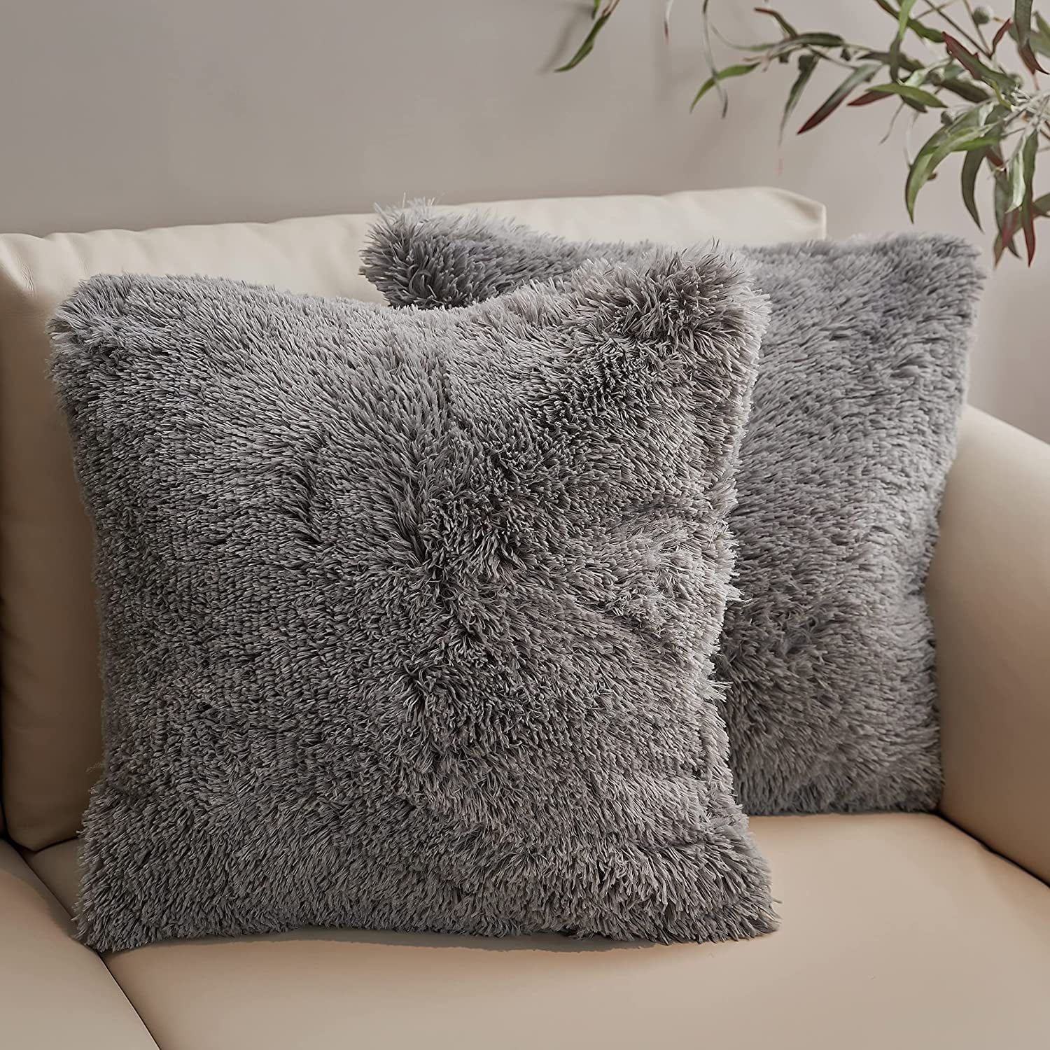 Cheer Collection Shaggy Long Hair Throw Pillows (Set of 2)