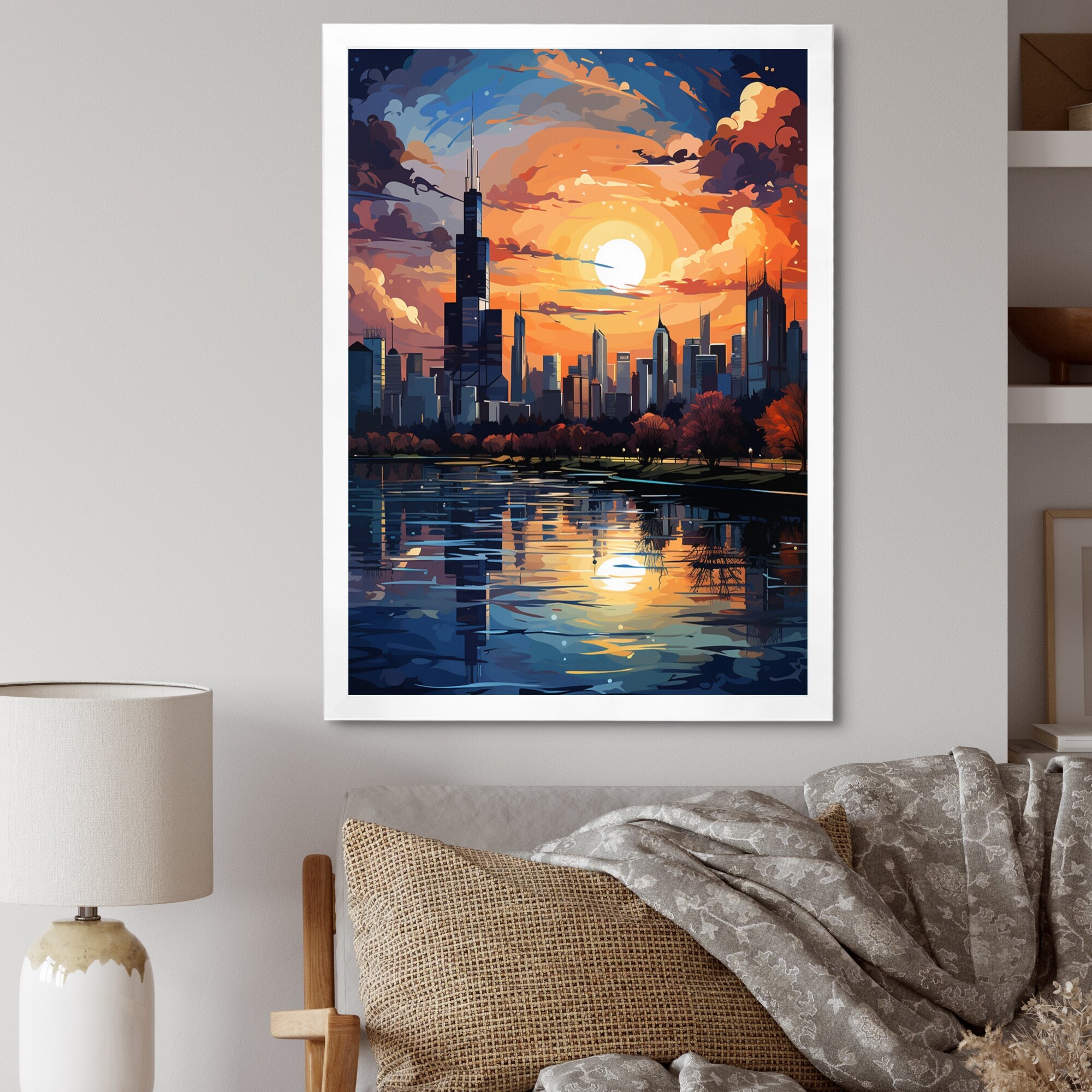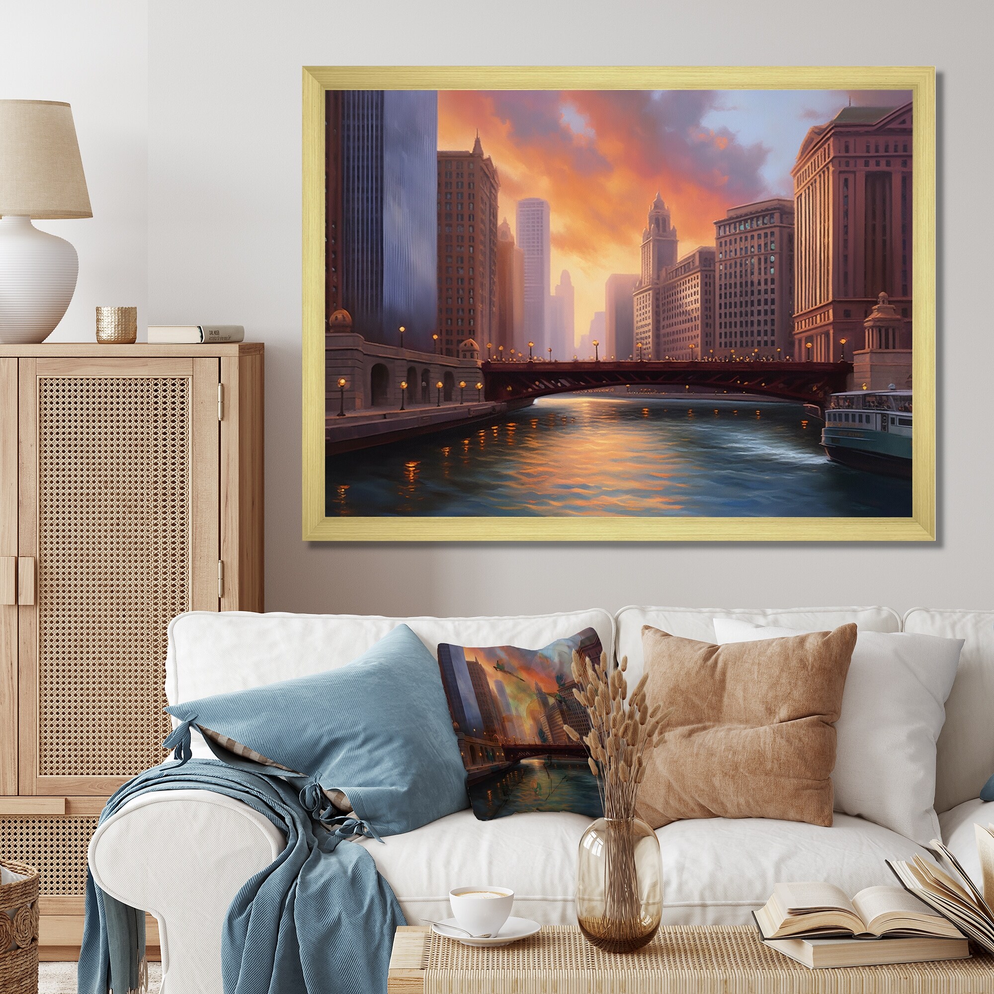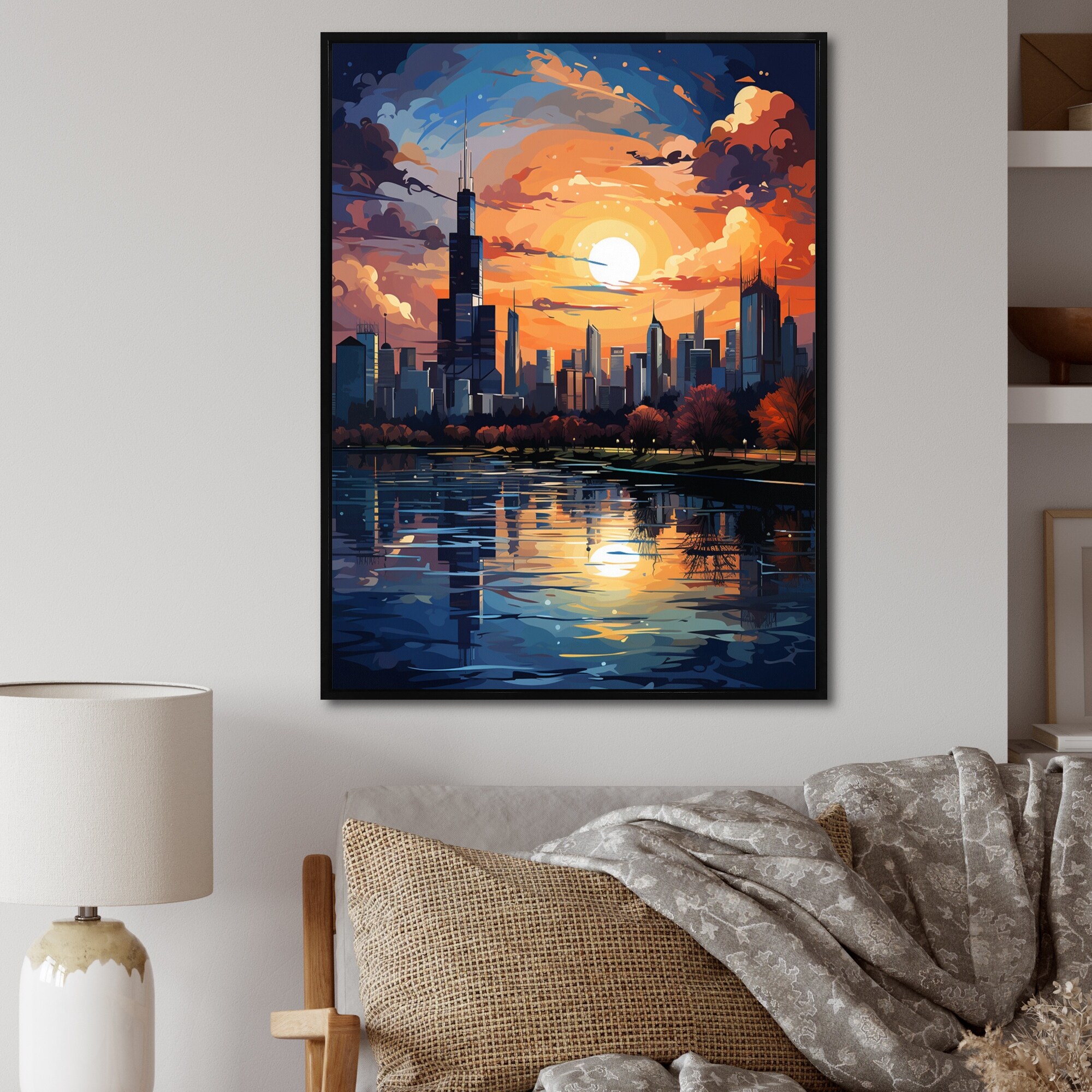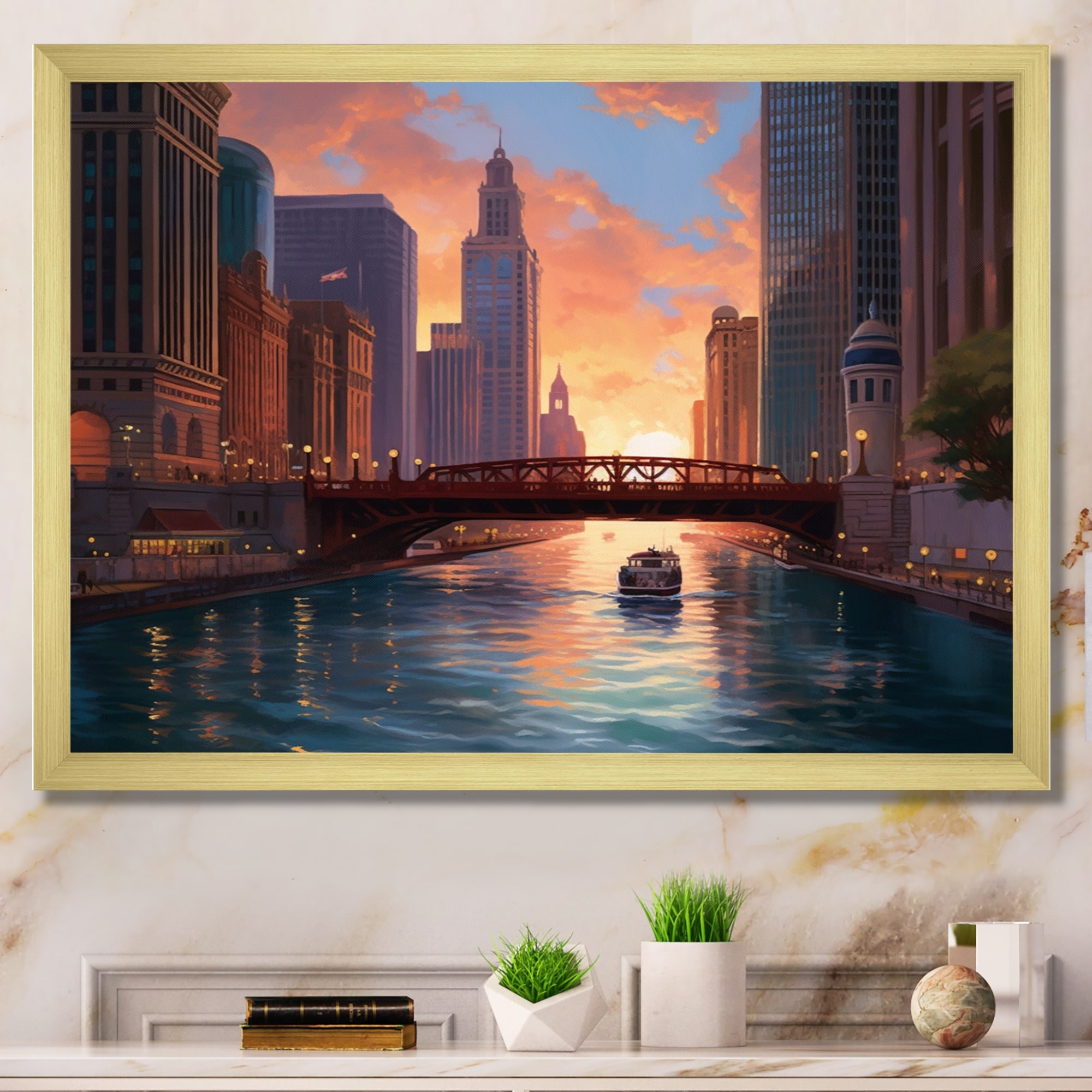 Designart "Chicago City Scene Iv" Landscape Modern Framed Canvas Art Print