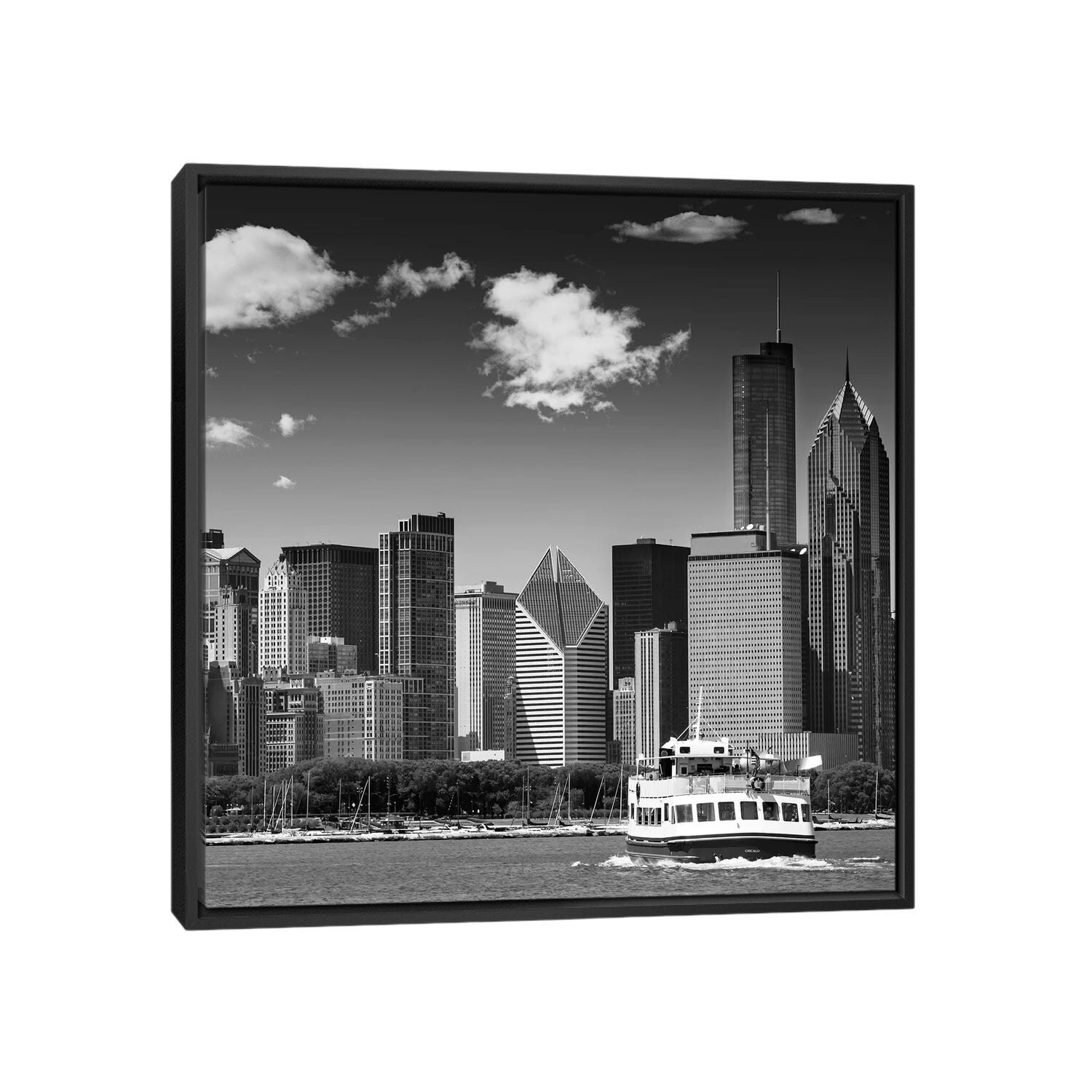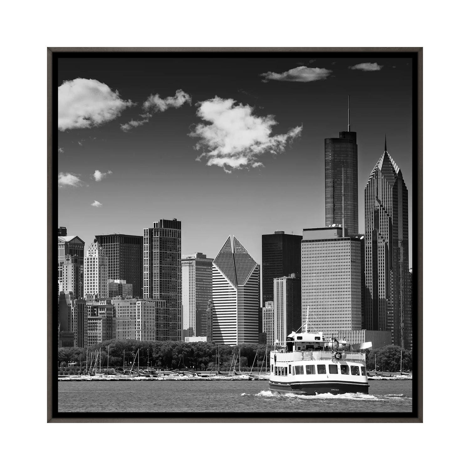 iCanvas "Chicago Cityscape in Black & White" by Melissa Wang Framed Canvas Print