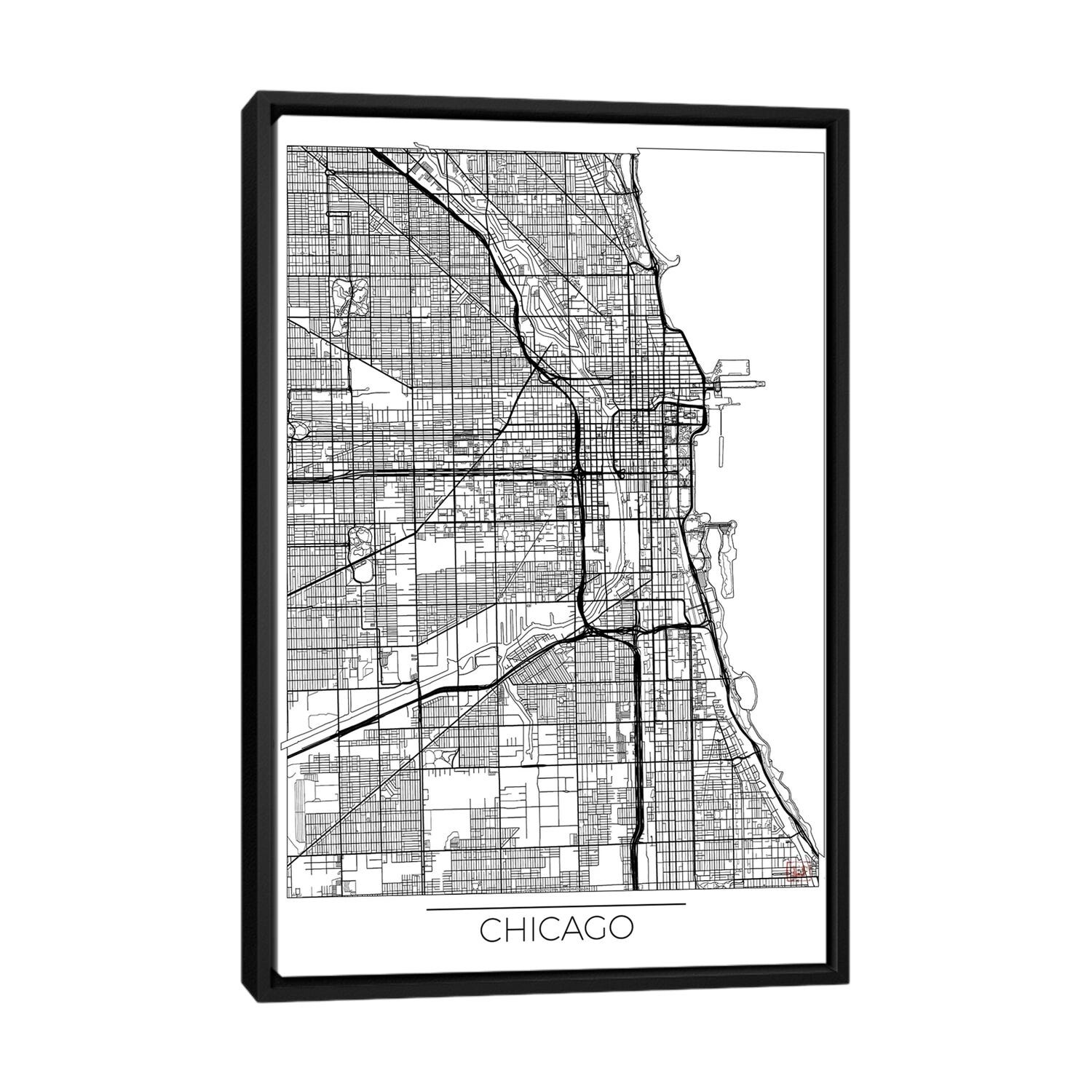 iCanvas "Chicago Minimal Urban Blueprint Map" by Hubert Roguski Framed