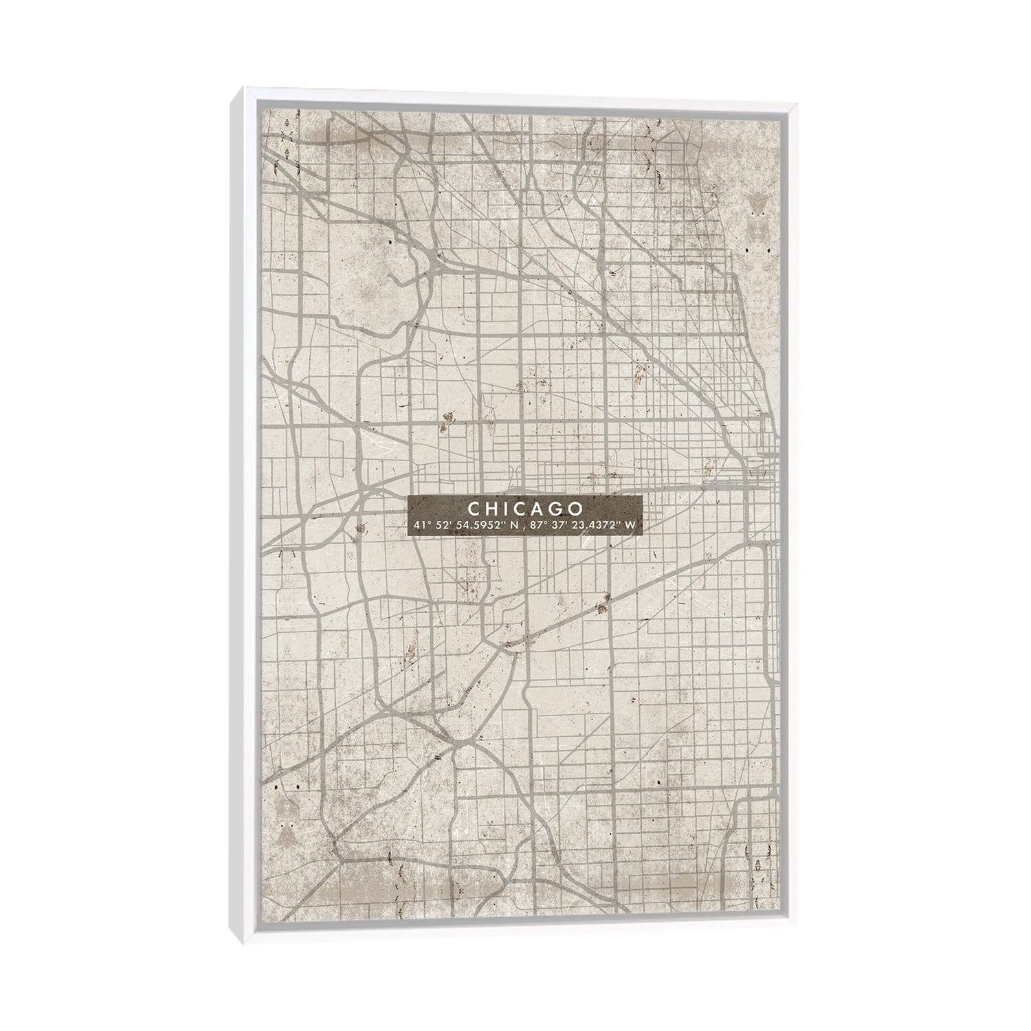 iCanvas "Chicago Map" by Mr. City Printing Framed Canvas Print