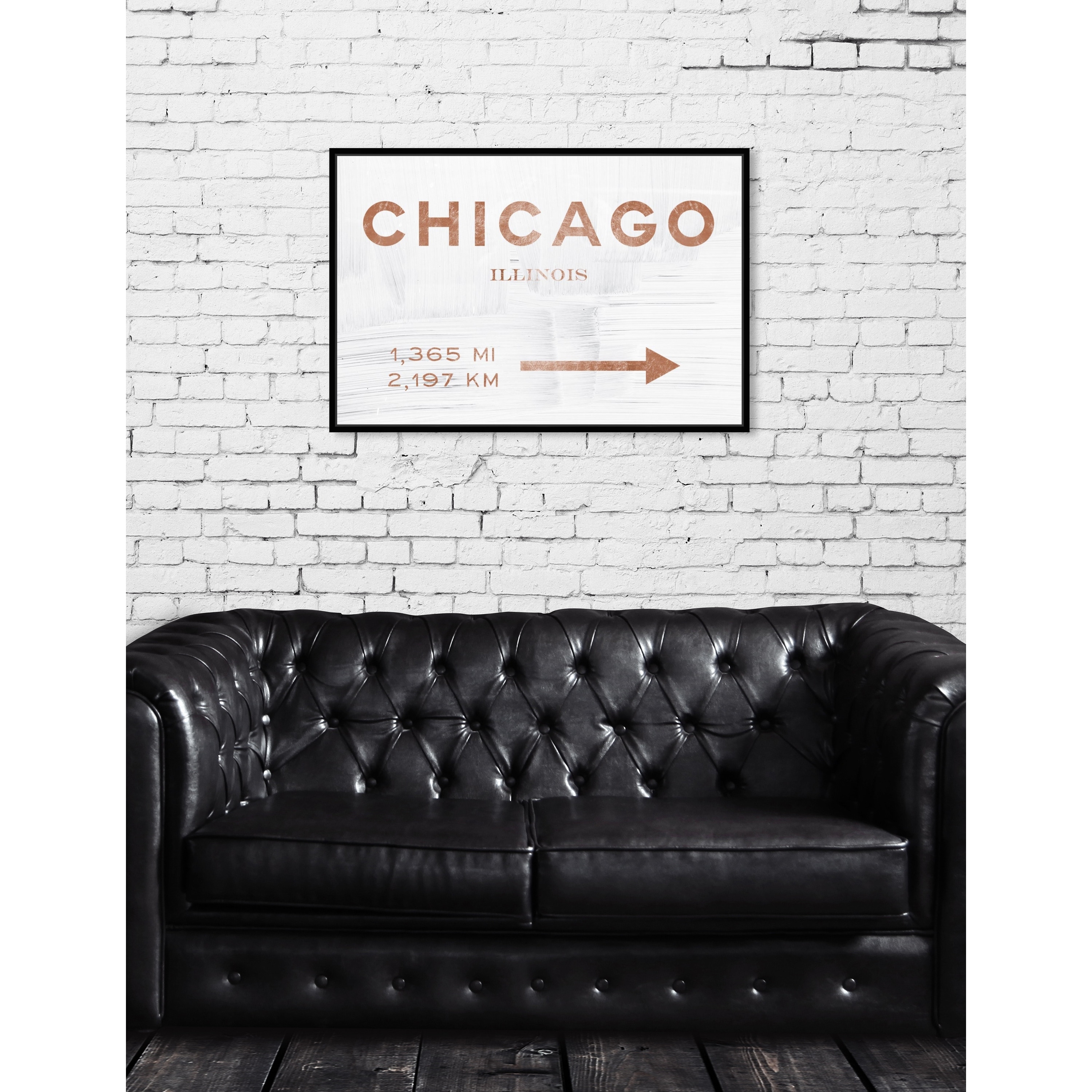 Oliver Gal 'Chicago Road Sign Copper' Cities Framed Art Print on Premium Canvas