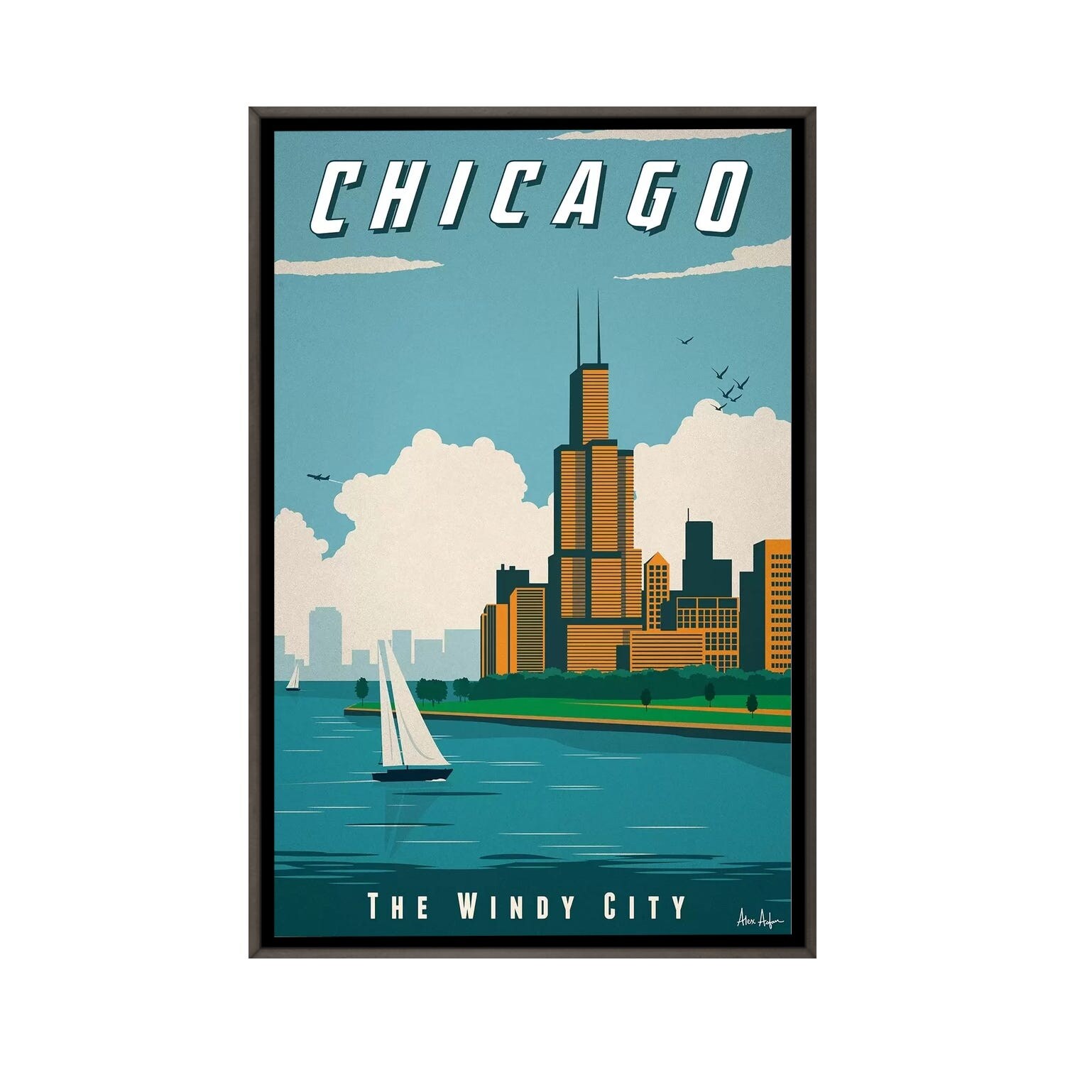 iCanvas "Chicago Poster" by IdeaStorm Studios Framed