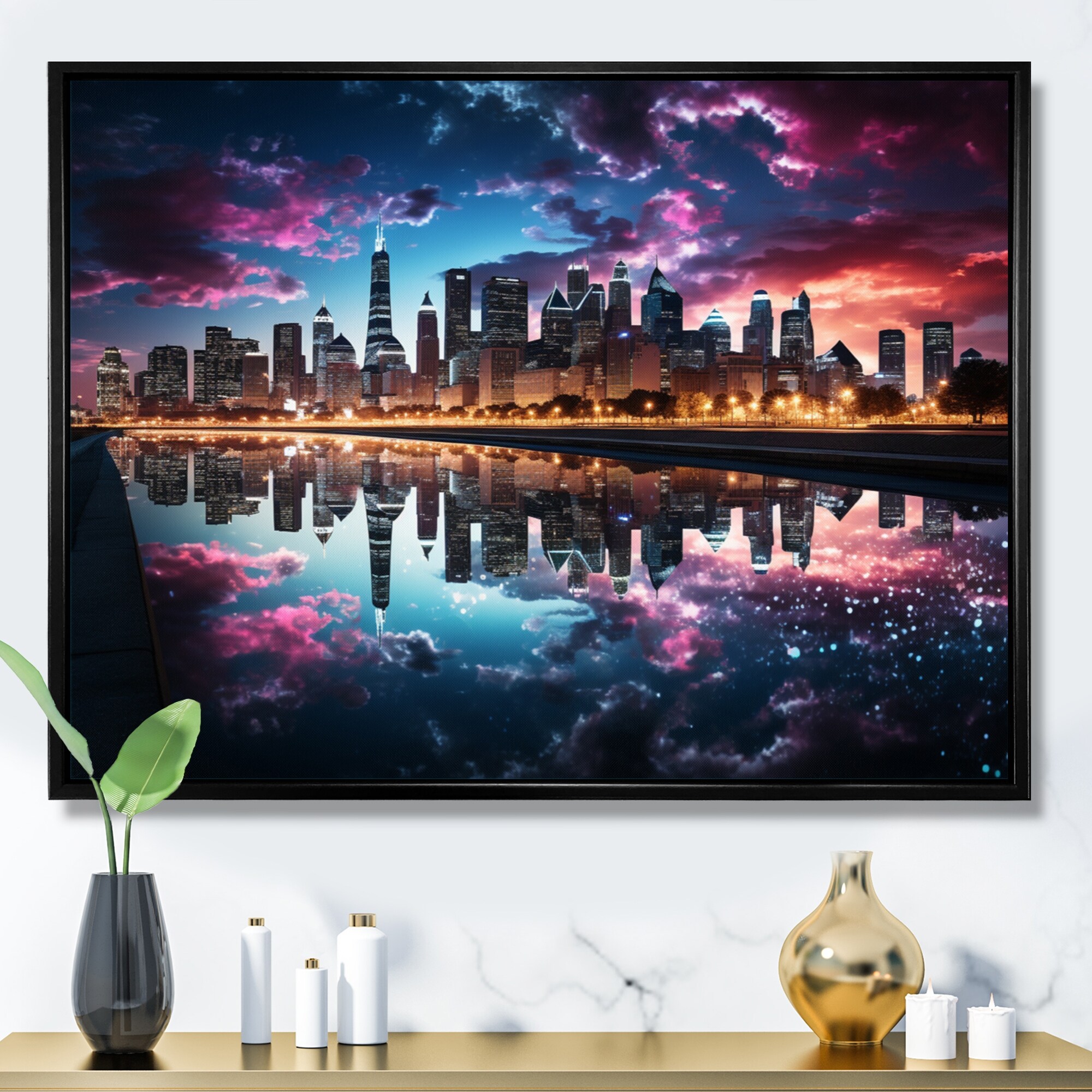 Designart "USA Chicago Skyscrapper Reflections" USA Framed Canvas Wall Art