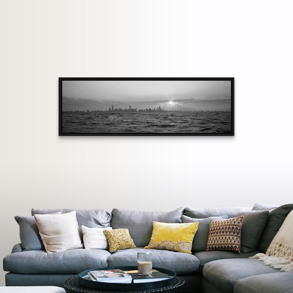 iCanvas "Chicago Panoramic Skyline Cityscape (Black & White - Sunrise)" by Unknown Artist Framed