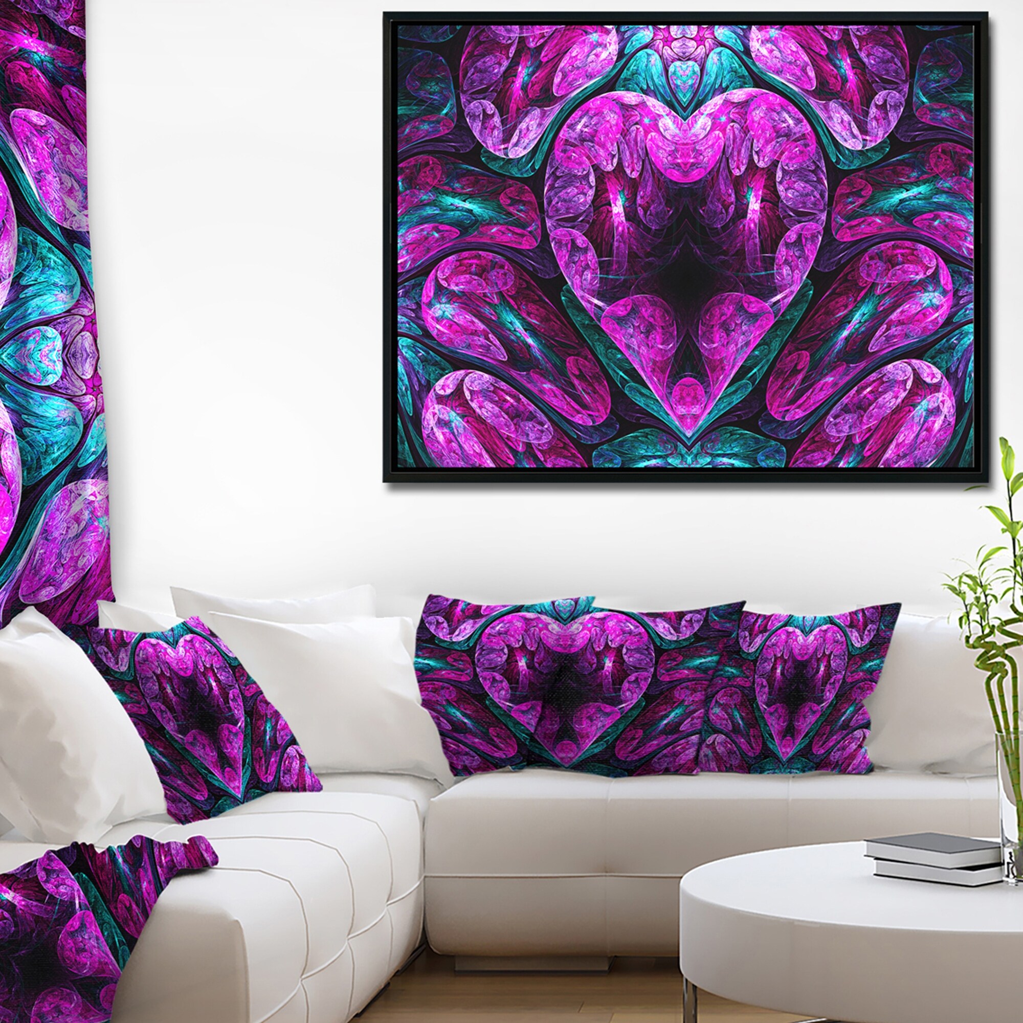 Designart "Purple Cold Mystical Heart" Floral Framed Canvas Art Print