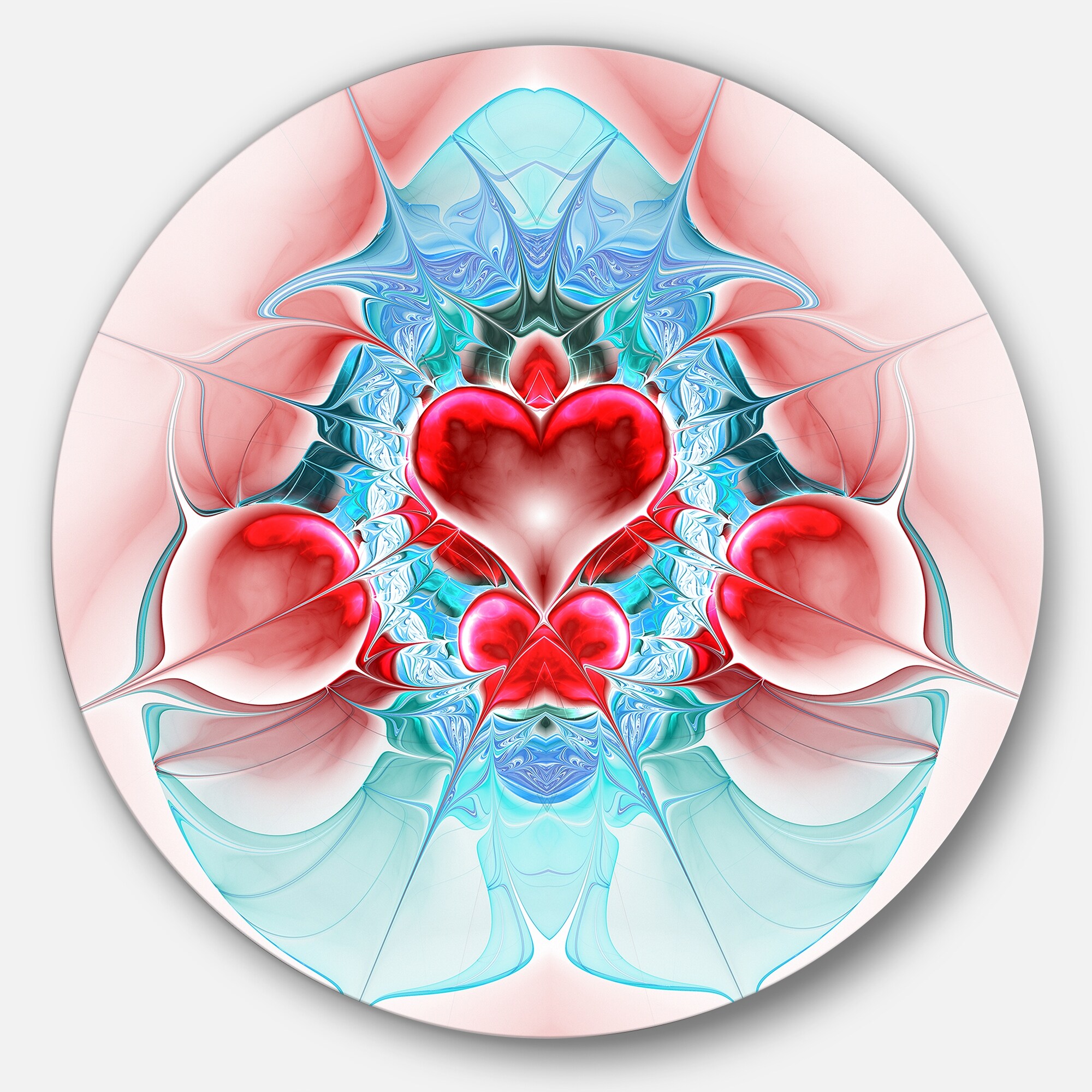 Designart 'Cold Extraterrestrial Fractal Heart Red' Modern Floral Disc Metal Wall Art