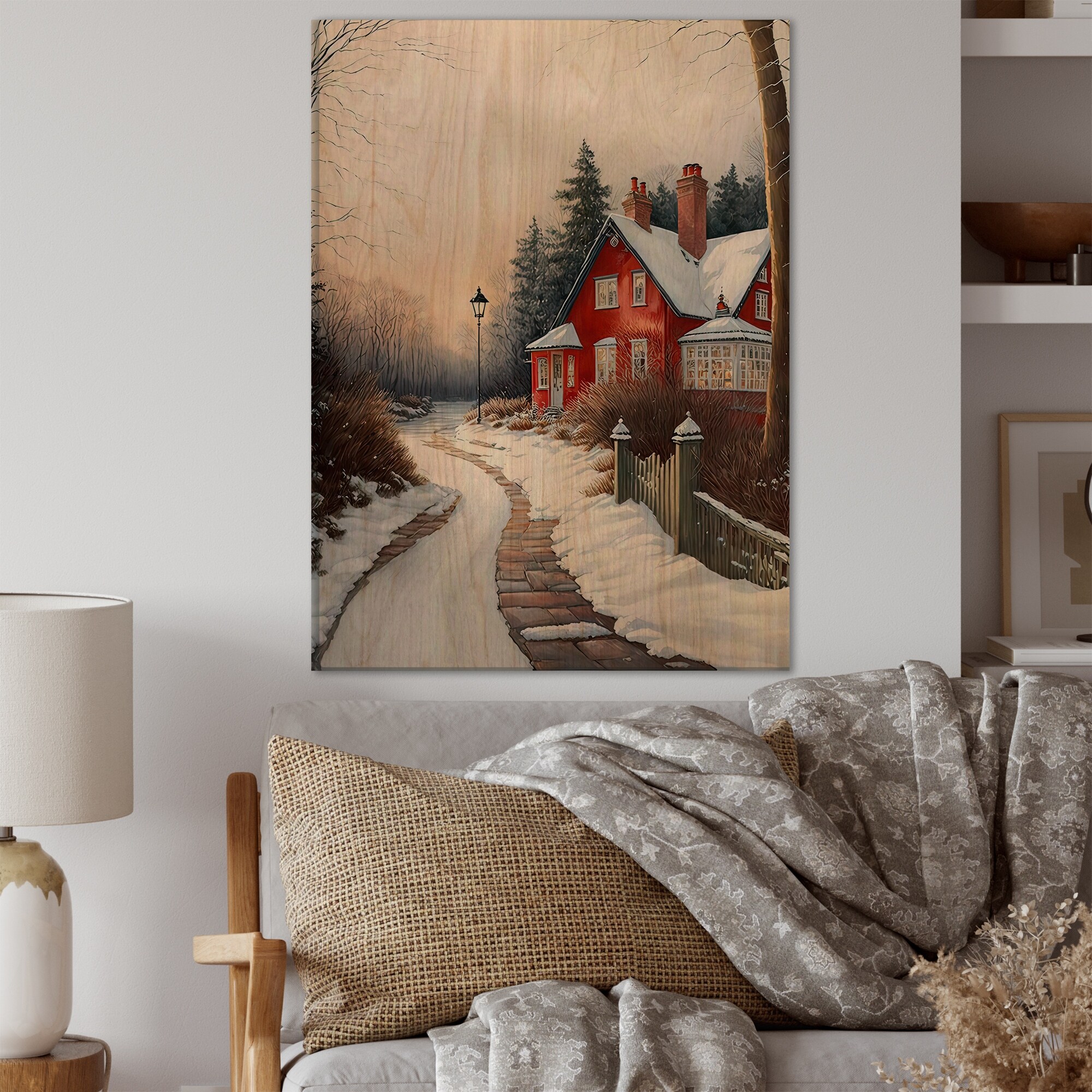 Designart 'Cold Winter View on the Country I' Lake House Cottage Wood Wall Art - Natural Pine Wood