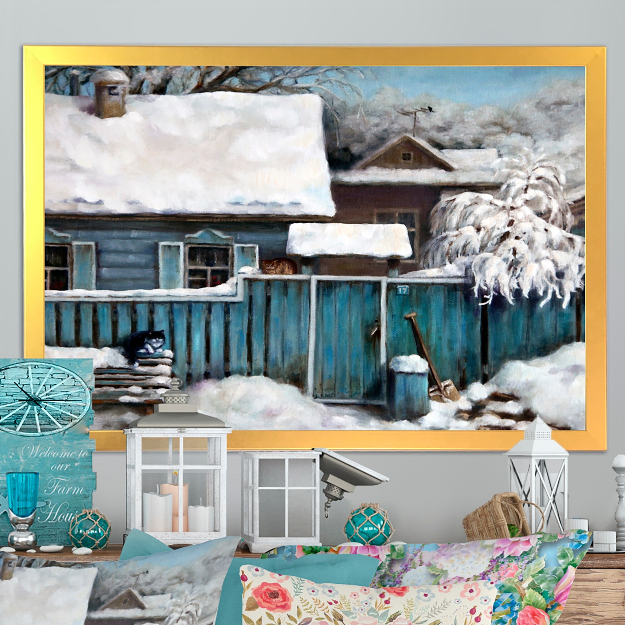 Designart "Cold Winter View on the Country III" Farmhouse / Country Framed Canvas Art Print
