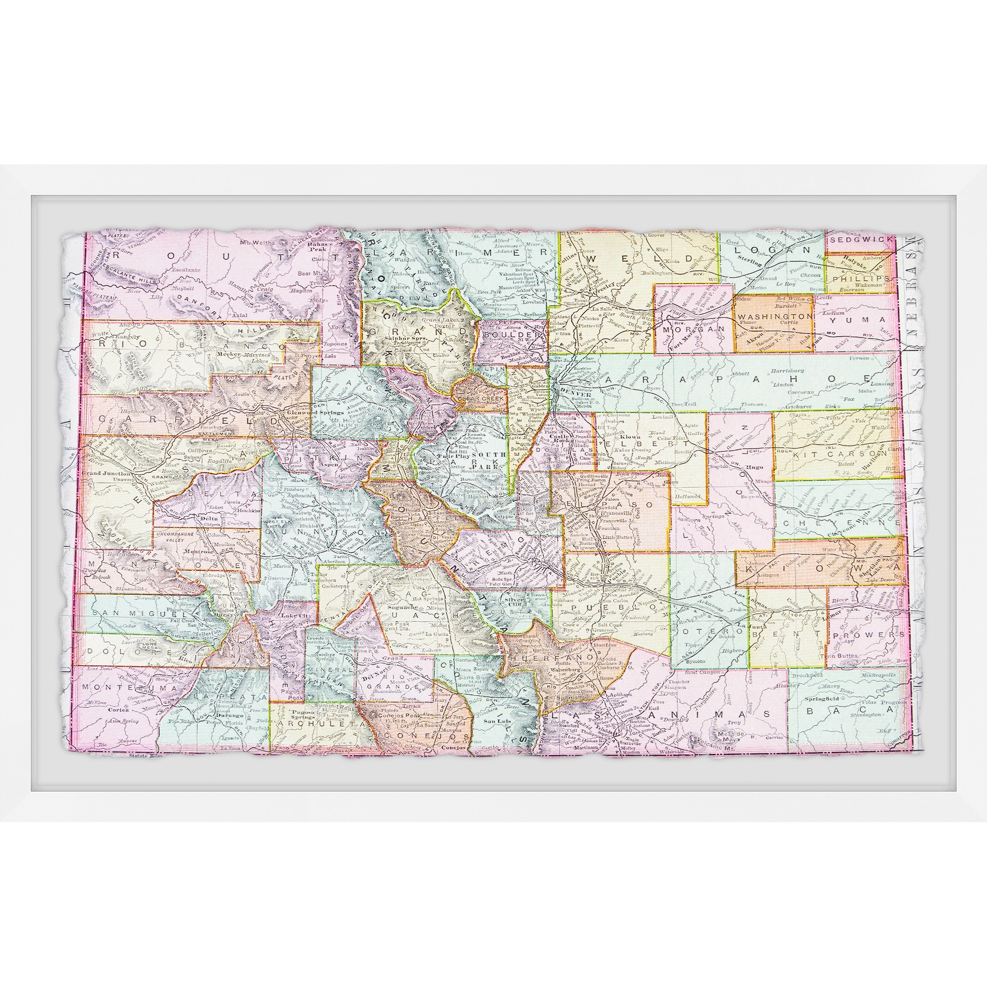 'Colorado Colored Map' Framed Painting Print