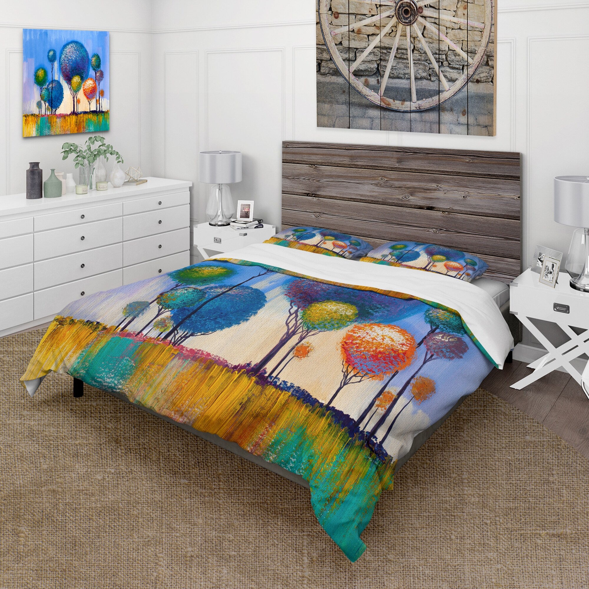 Designart 'Colourful Trees Impressionist Landscape I' Modern Duvet Cover Comforter Set