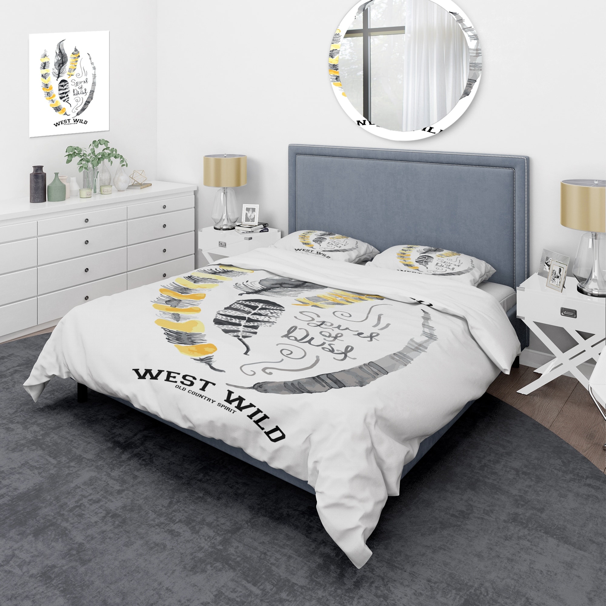 Designart 'Yellow Ethnic Plume Feathers' Bohemian & Eclectic Duvet Cover Comforter Set