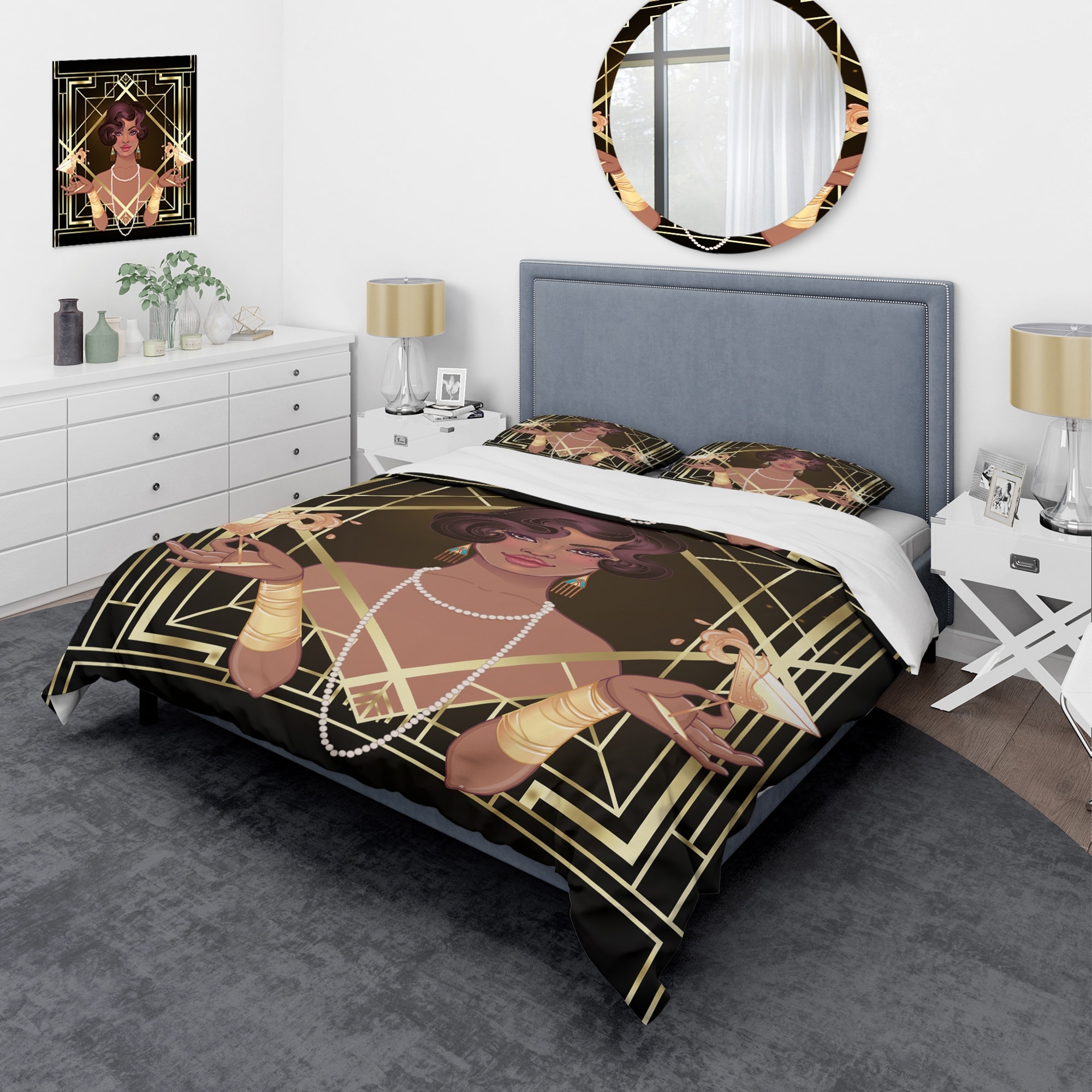 Designart 'Retro Women in Golden Art Deco Geometrics I' Modern Duvet Cover Comforter Set