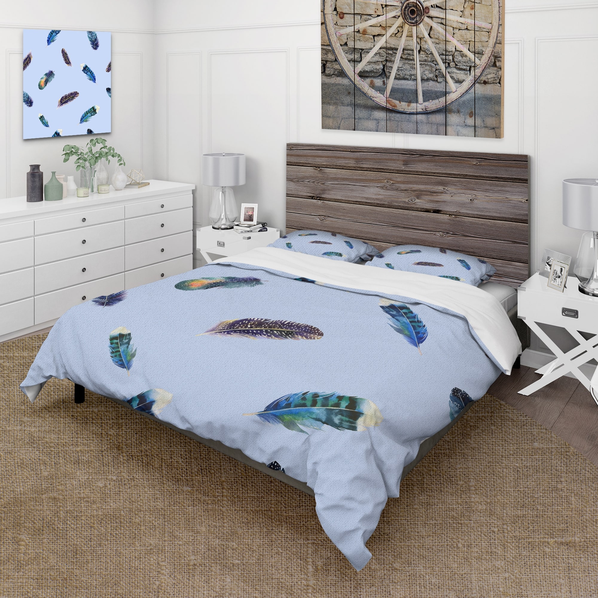 Designart 'Boho Ethnic Blue Feathers' Bohemian & Eclectic Duvet Cover Comforter Set